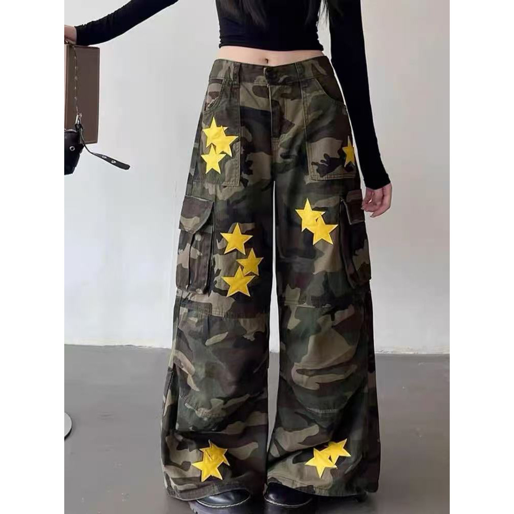 • American Retro Workwear Women's Loose Straight Wide Leg XINGX Camouflage Jeans