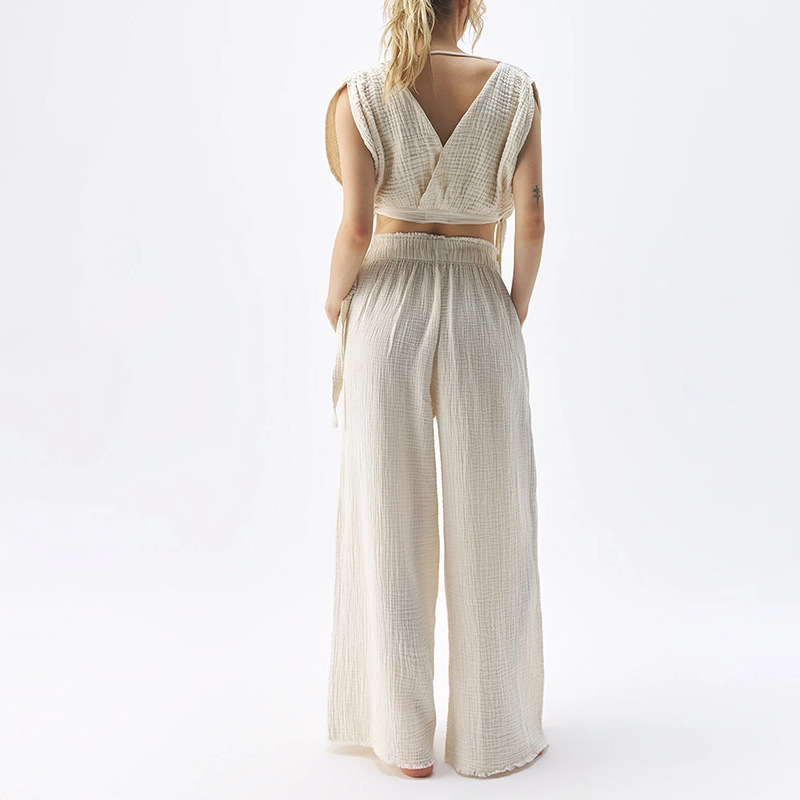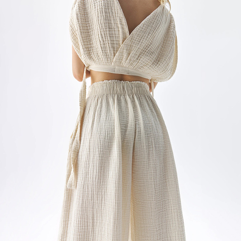• Double-layer Gauze Trousers High Waist Thin Cotton Wide Leg Pants