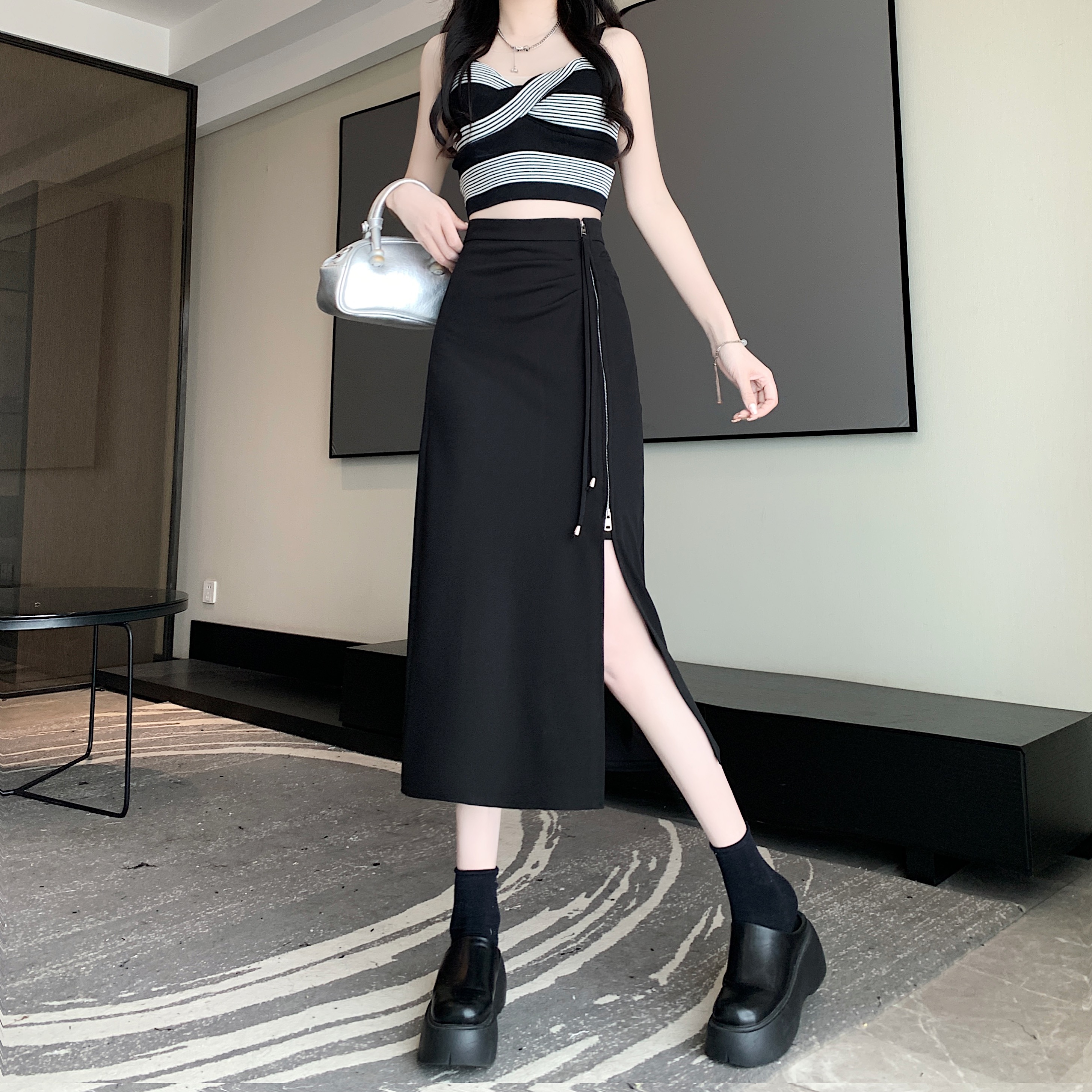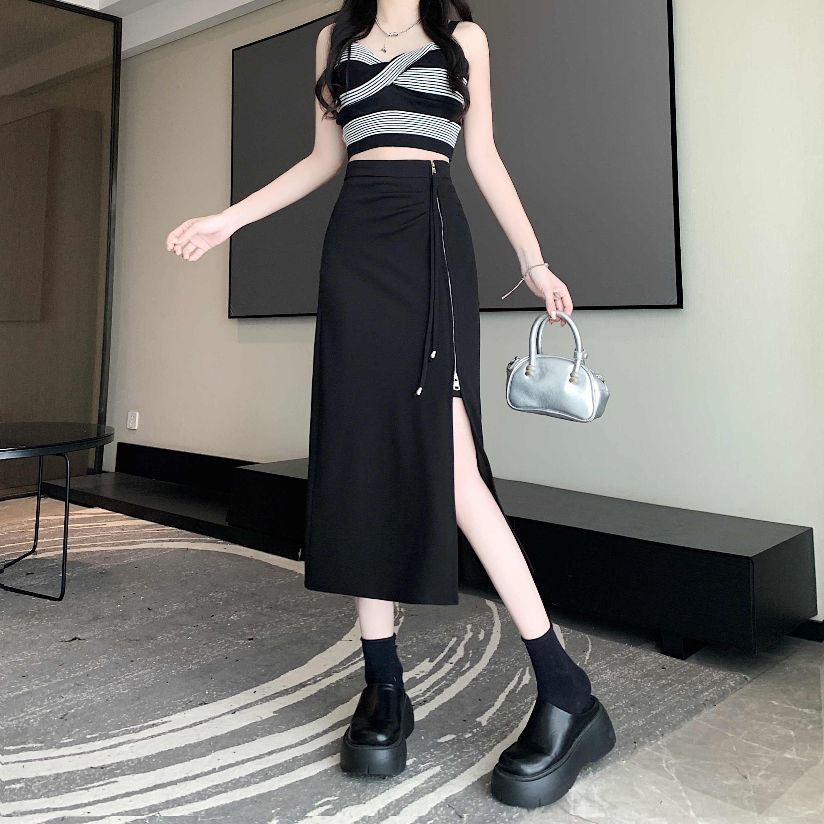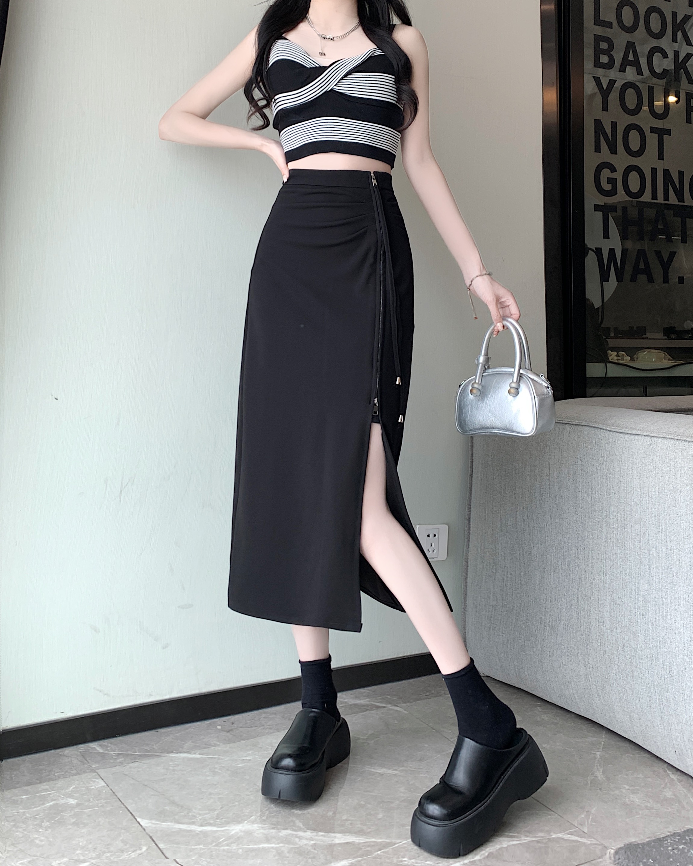 Irregular Slit Pleated Mid-length High Waist Sheath A- Line Skirt