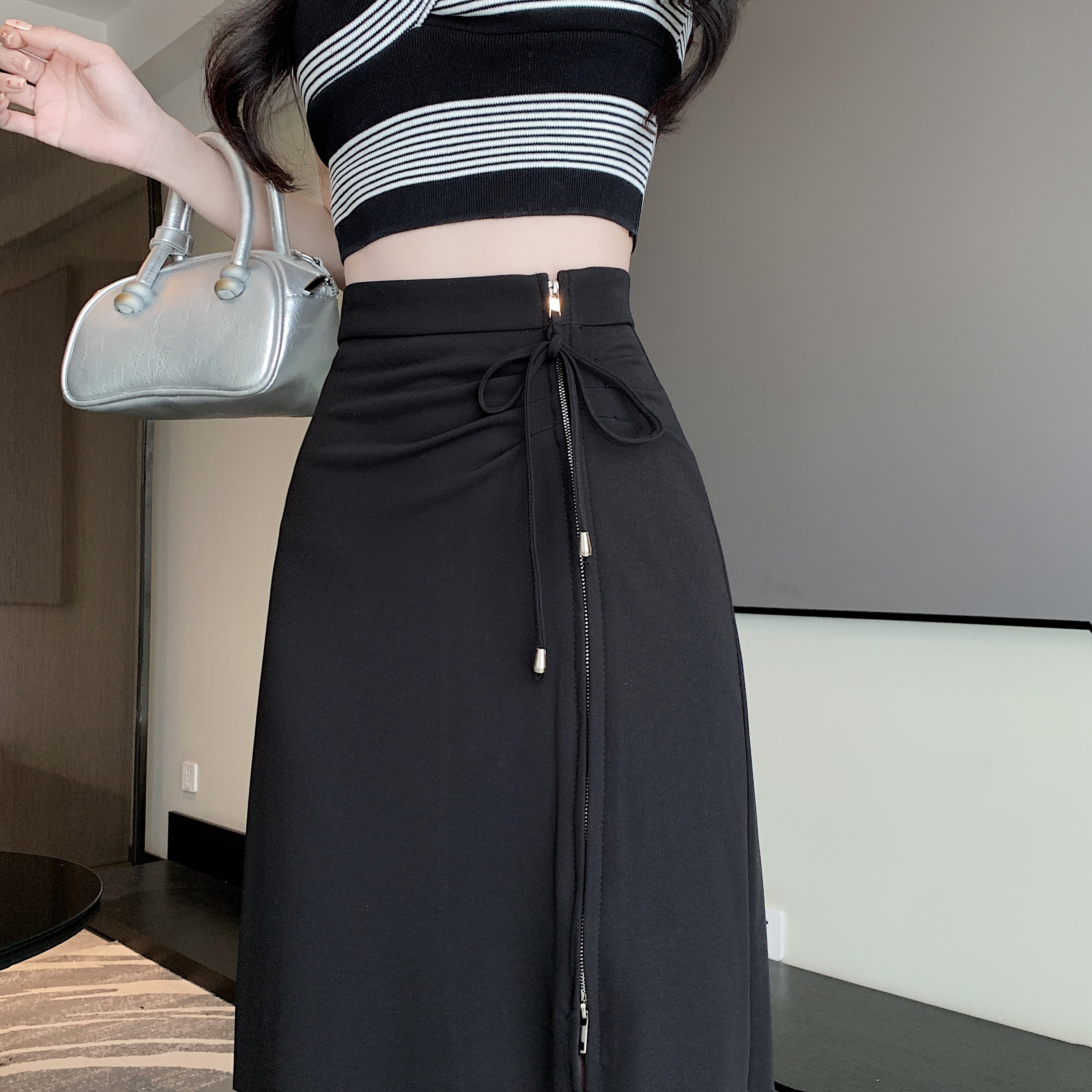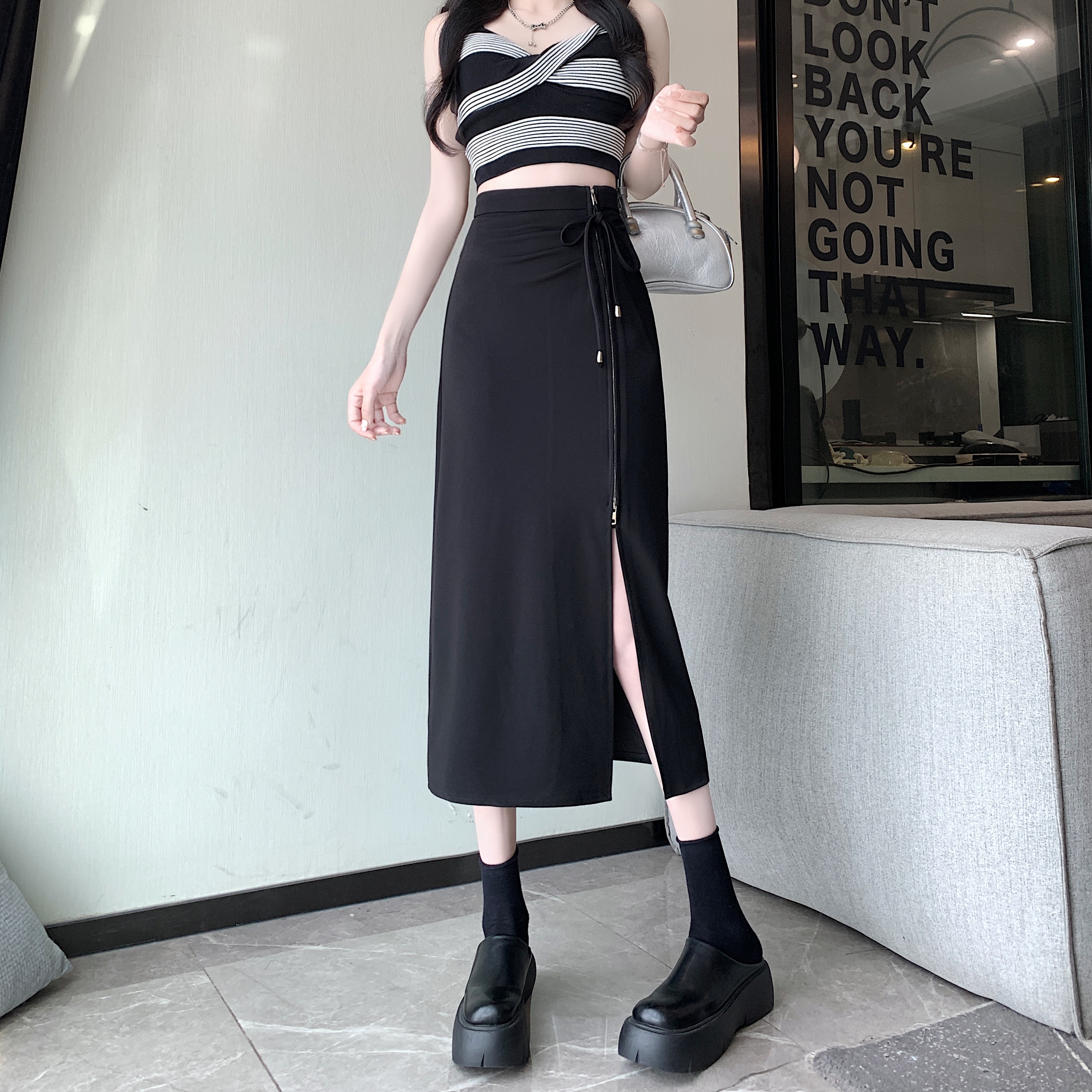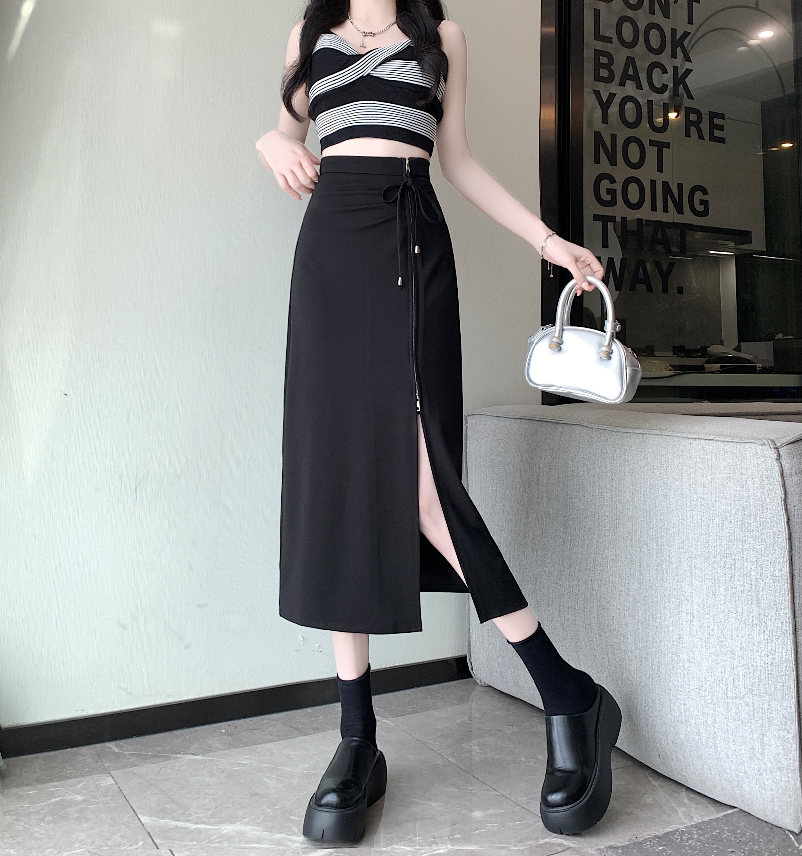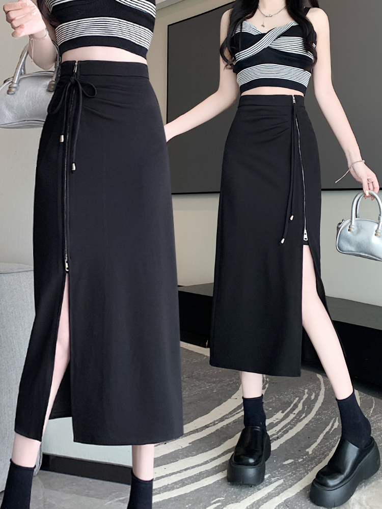 Irregular Slit Pleated Mid-length High Waist Sheath A- Line Skirt