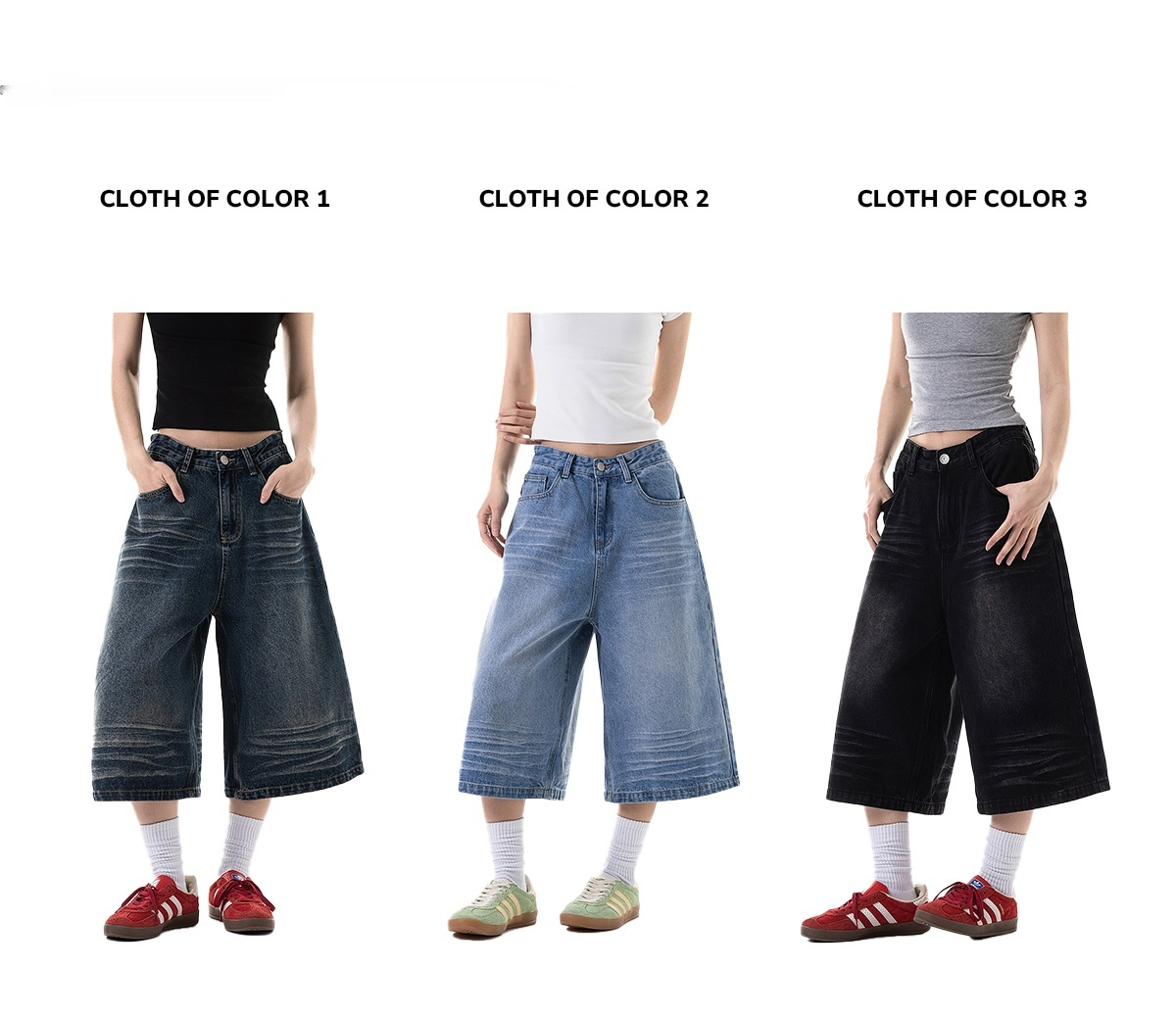 • Retro Cropped Jeans Loose Straight Cargo Casual Wide-leg Pants Shorts For Women