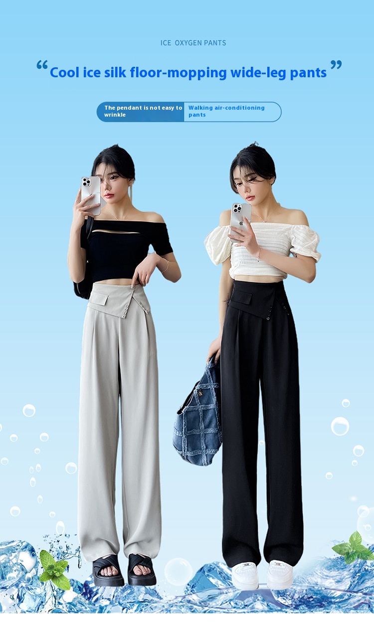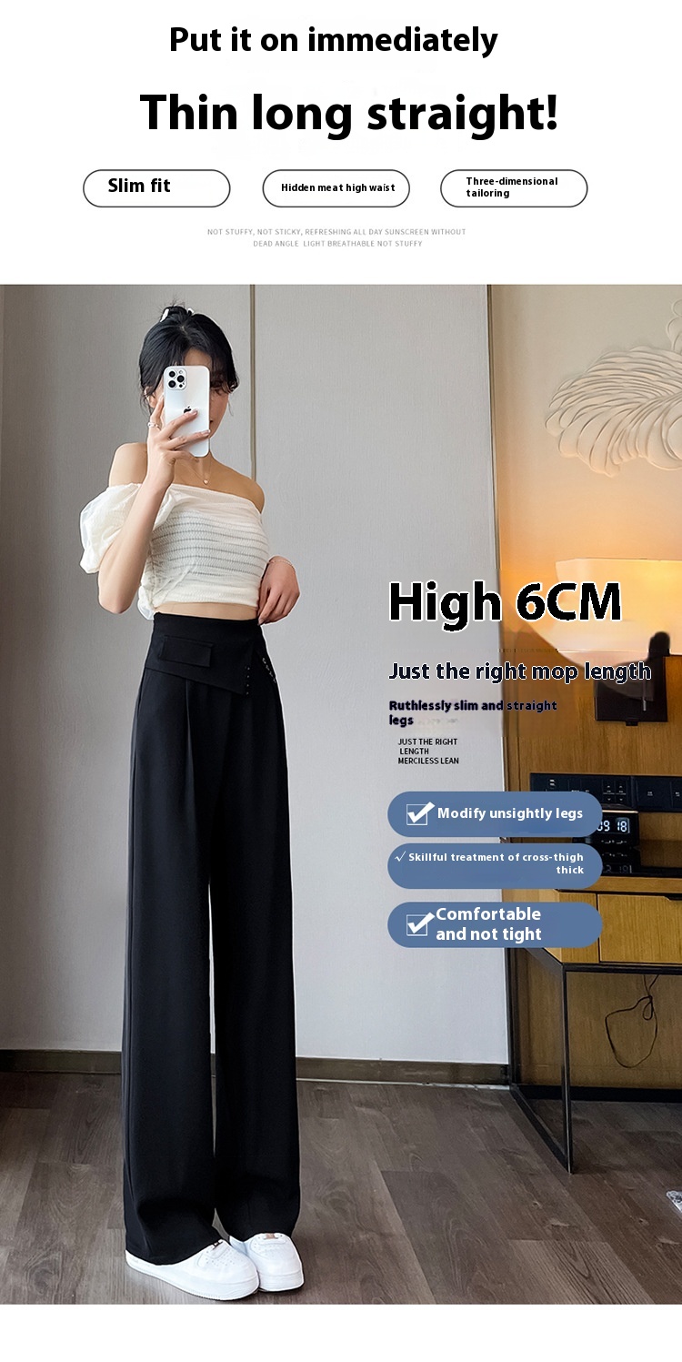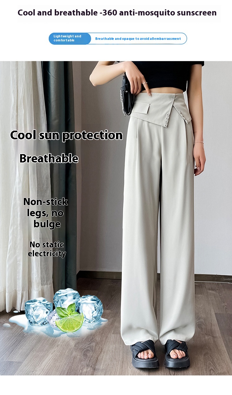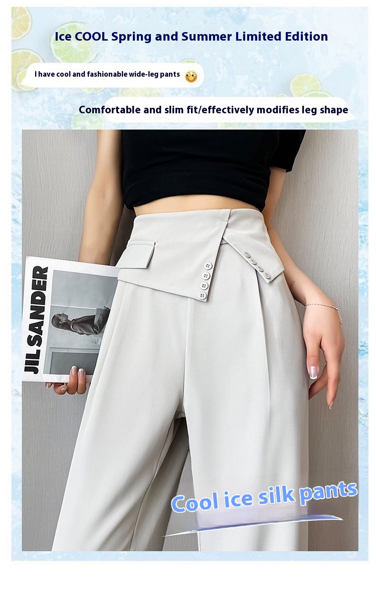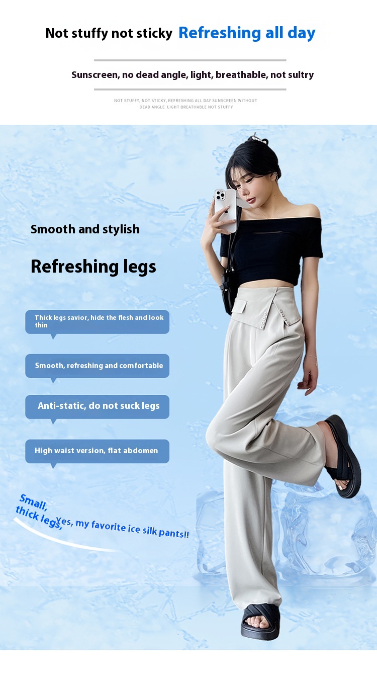 • Summer Thin Design Sense High Waist Drooping Chiffon Wide Leg Loose Straight Casual Pants