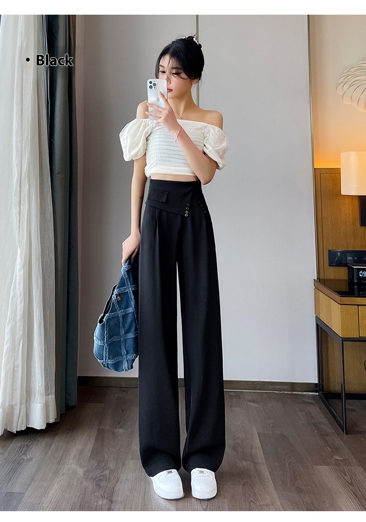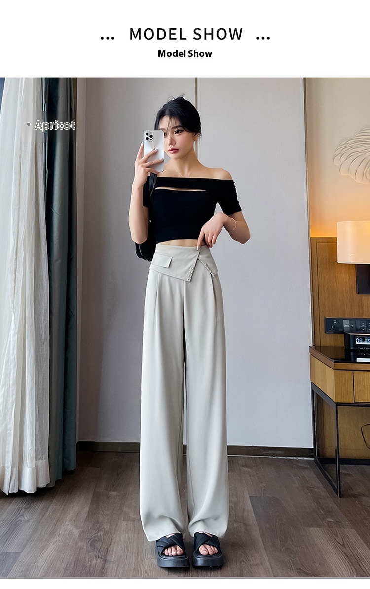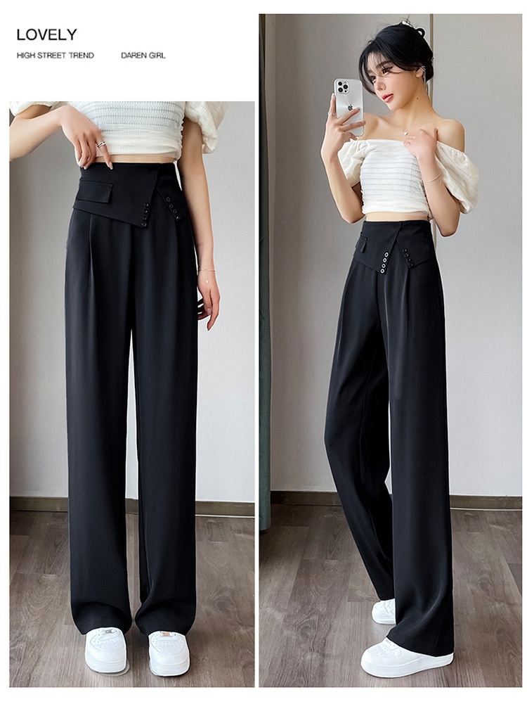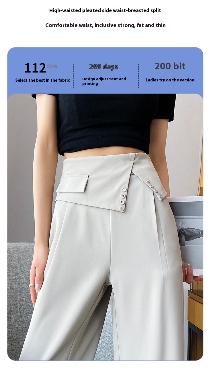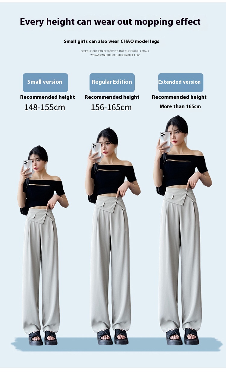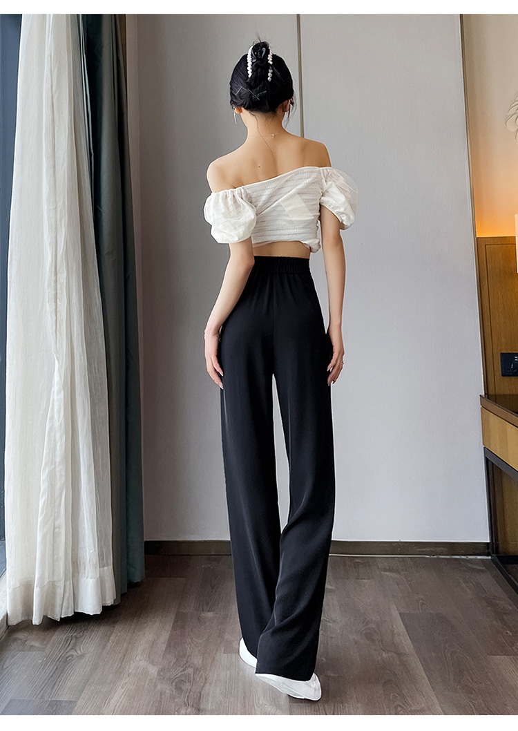 • Summer Thin Design Sense High Waist Drooping Chiffon Wide Leg Loose Straight Casual Pants