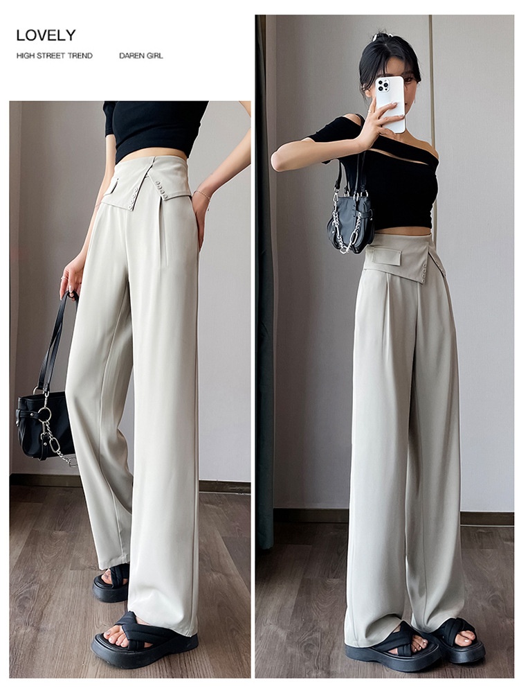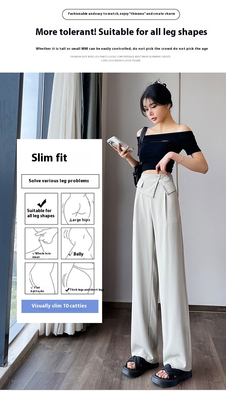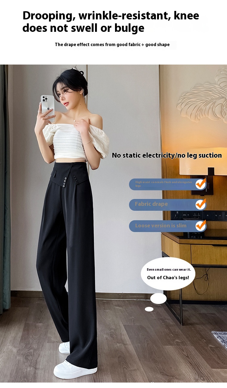 Summer Thin Design Sense High Waist Drooping Chiffon Wide Leg Loose Straight Casual Pants