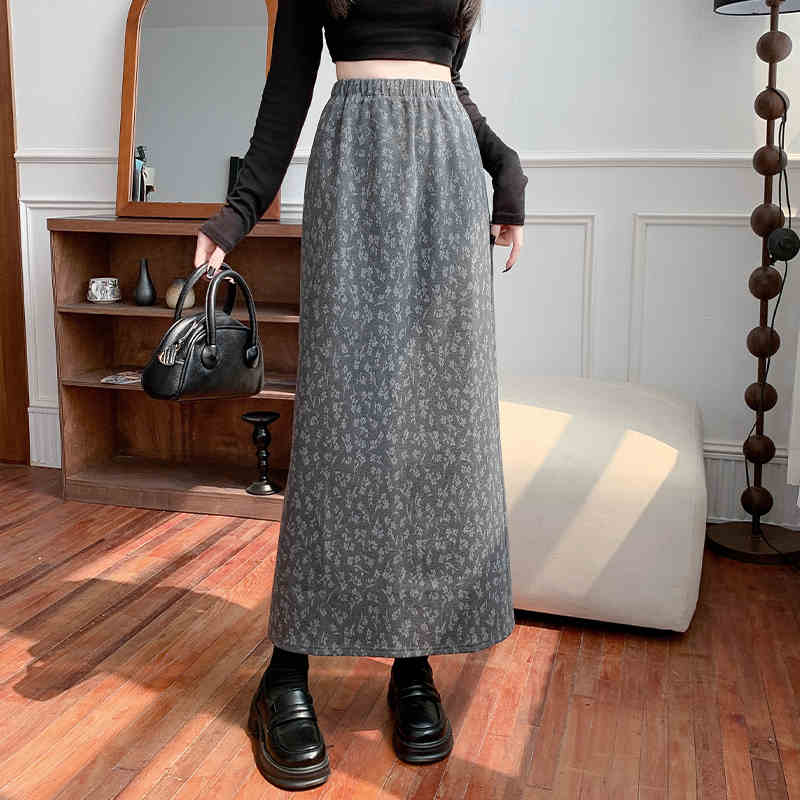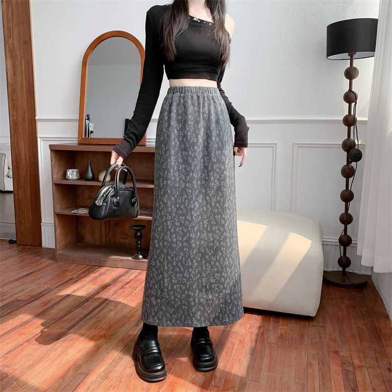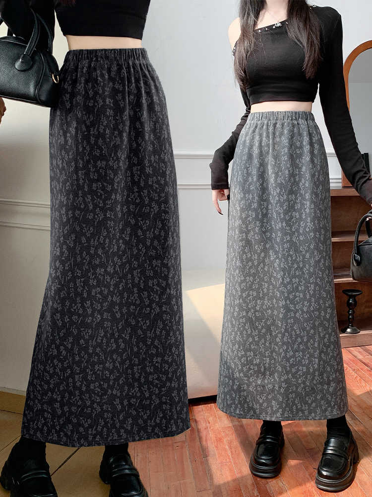 • Printed Straight Skirt Women's Bag Hip Mid-length A- Line Skirt