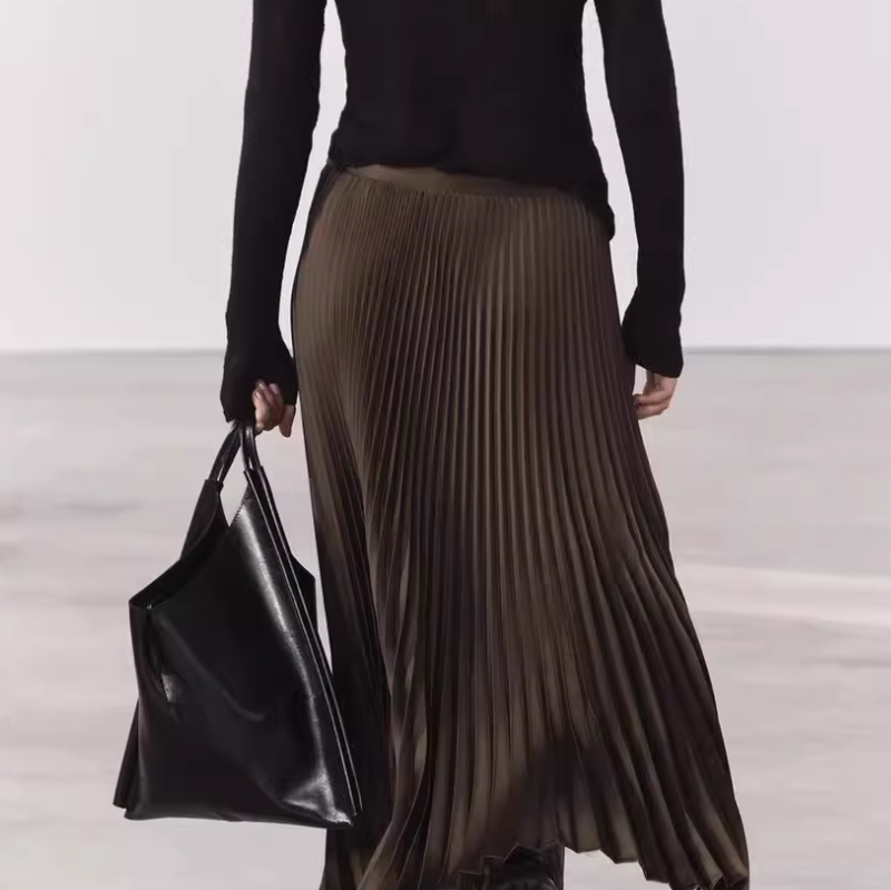 • Spring And Summer Pleated Skirt Small Pleated Silk Satin Texture