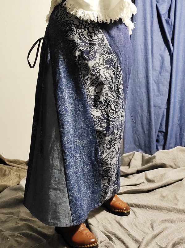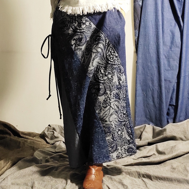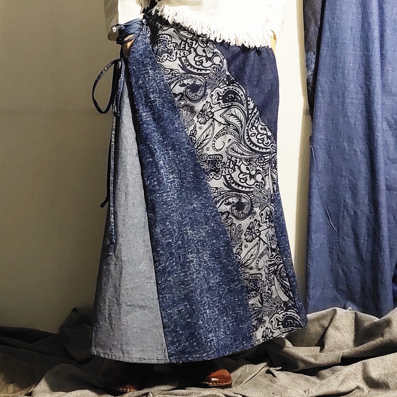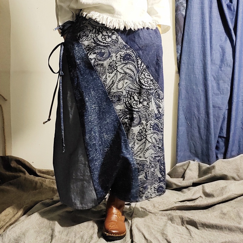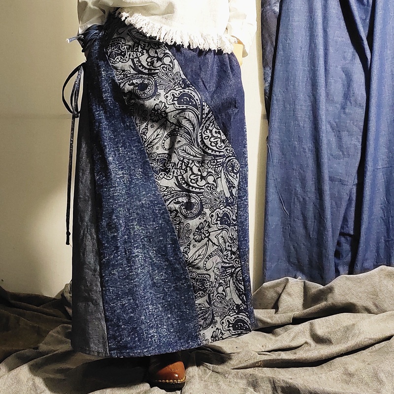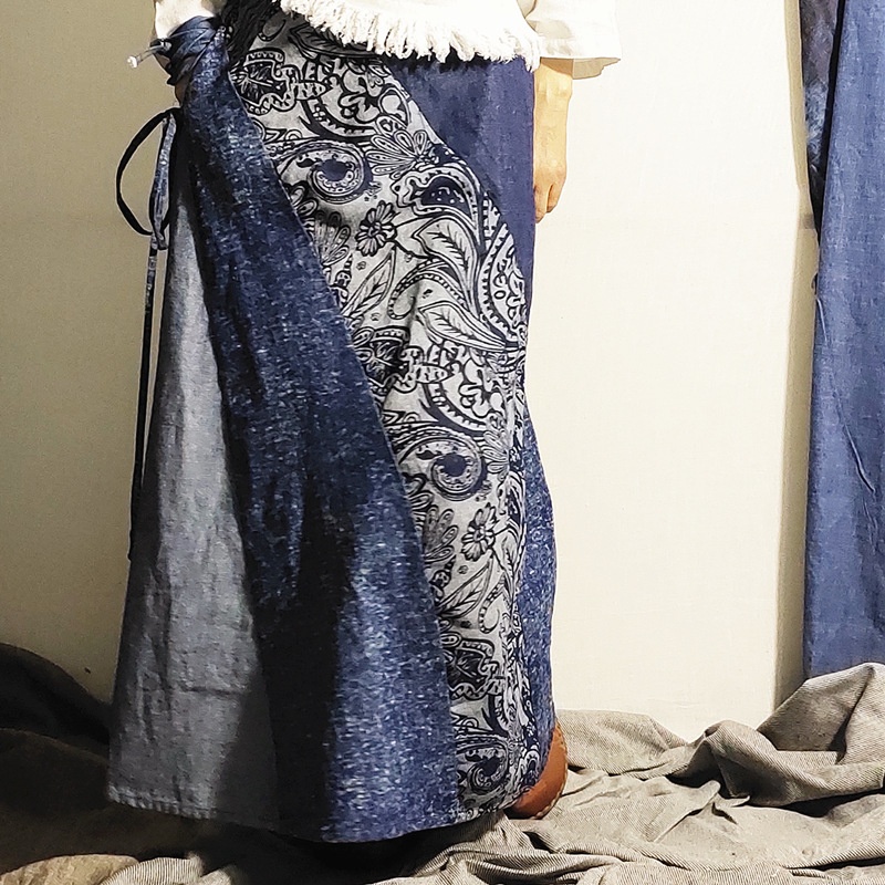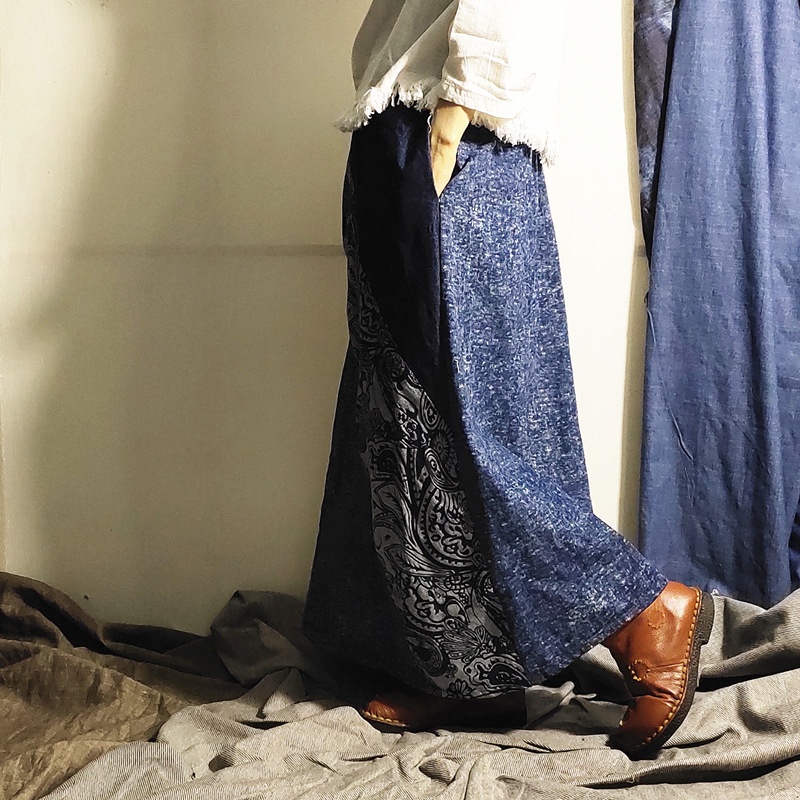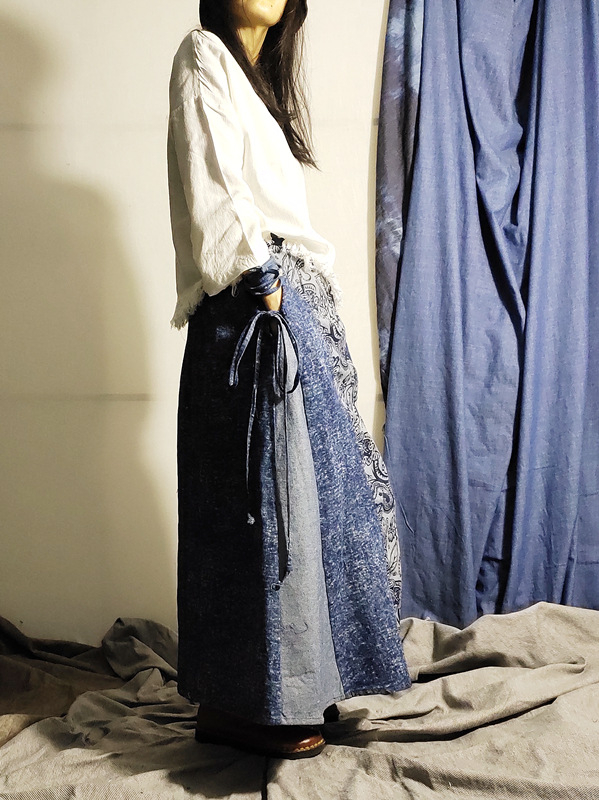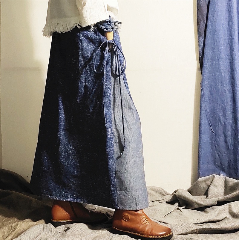 • Temperament Commute Retro Half-length Stitching Blue Long Skirt Skirt