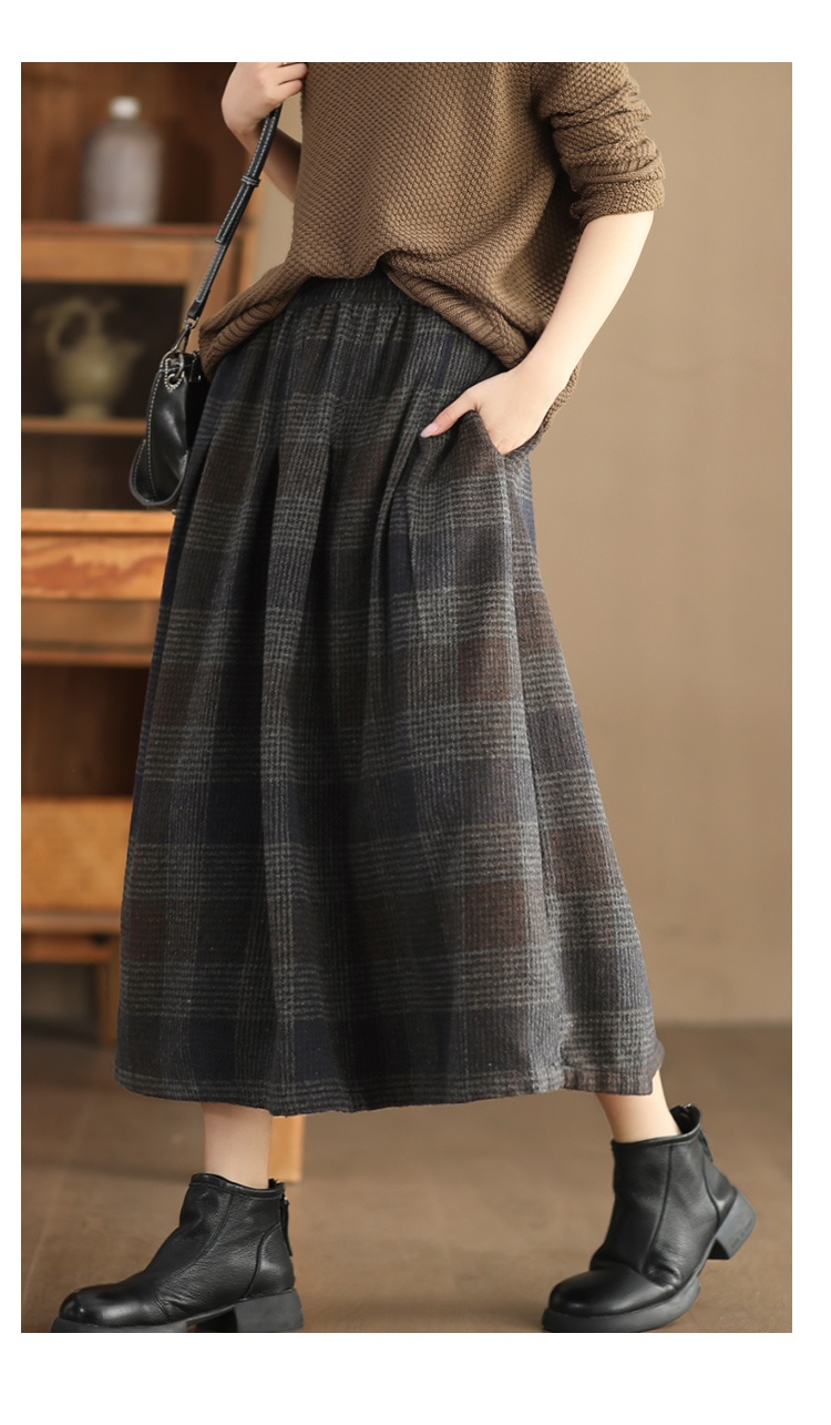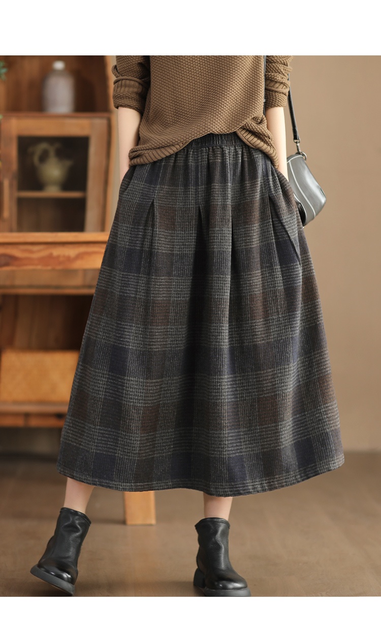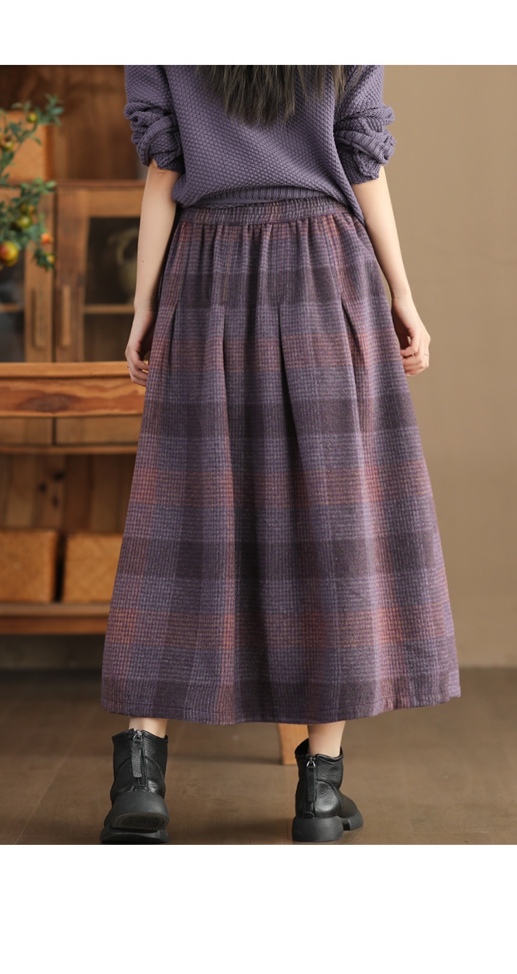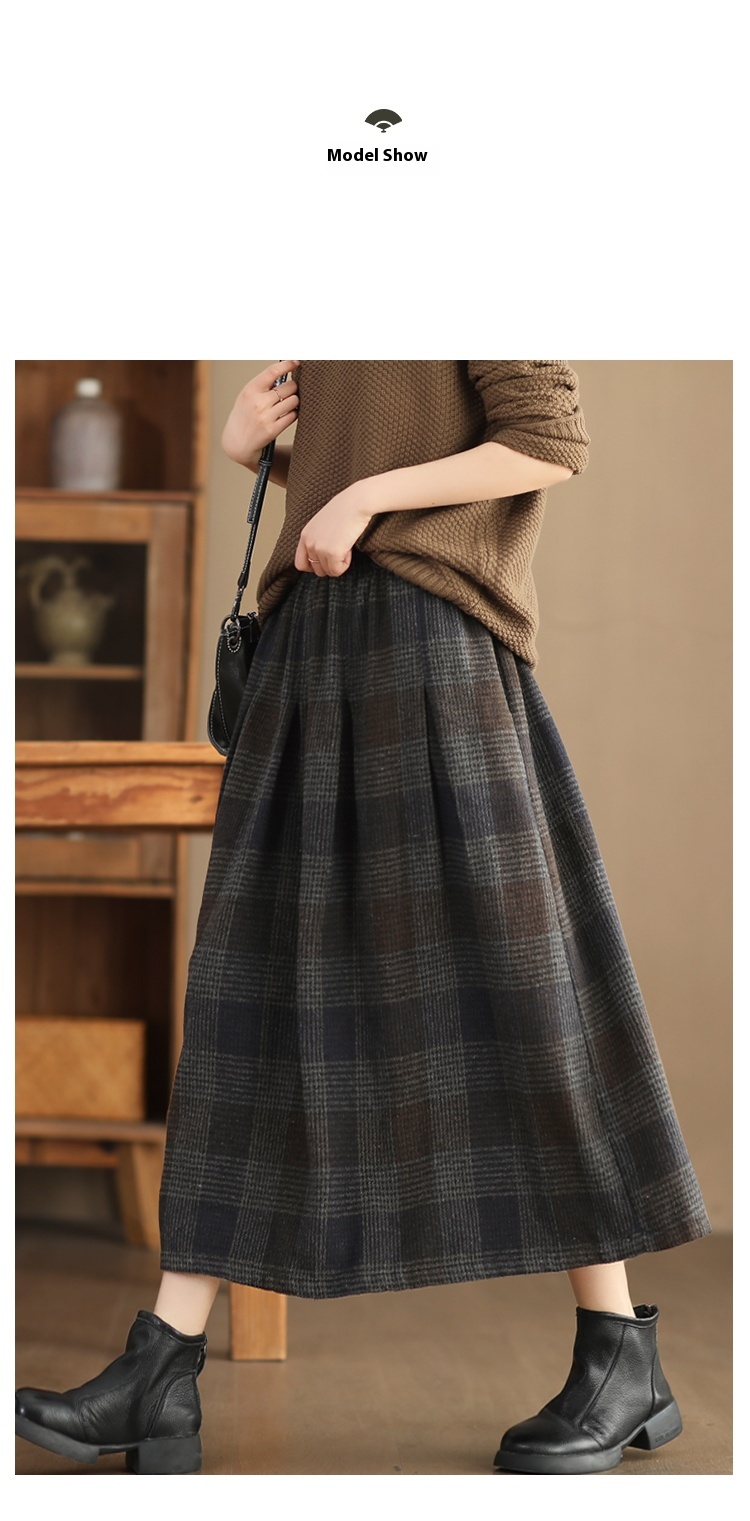 • Women's Wool Skirt Yarn-dyed Plaid Warm A- Line