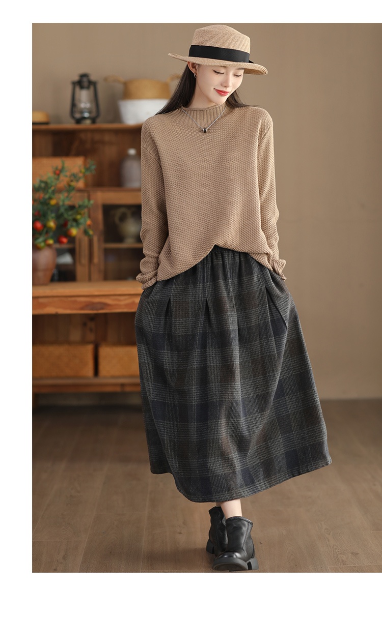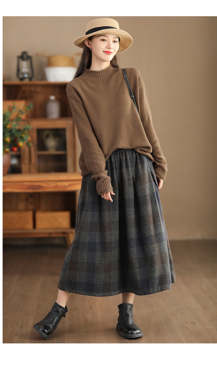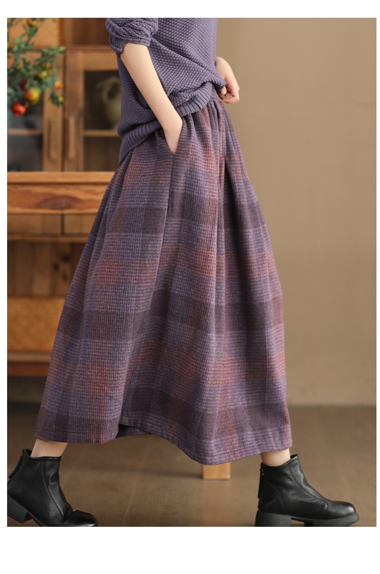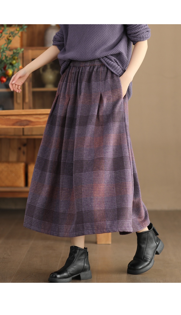 • Women's Wool Skirt Yarn-dyed Plaid Warm A- Line