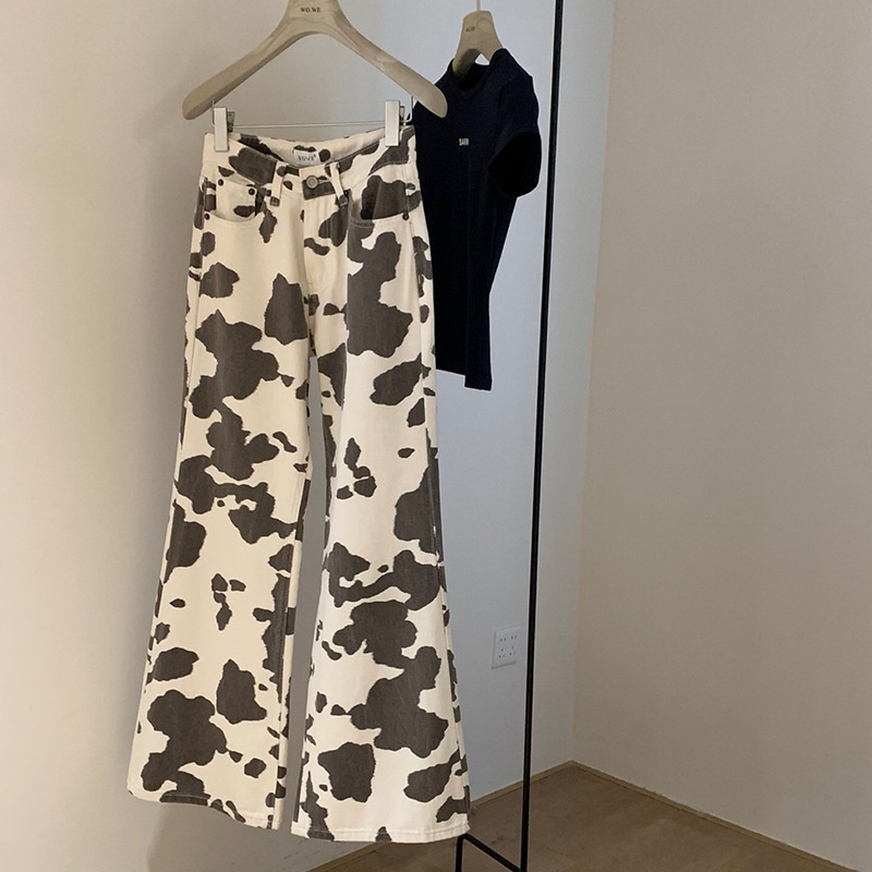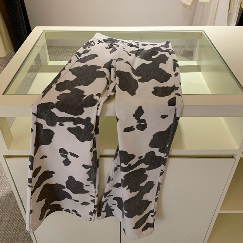 American Retro Washed Cow Stripe Skinny Jeans Loose