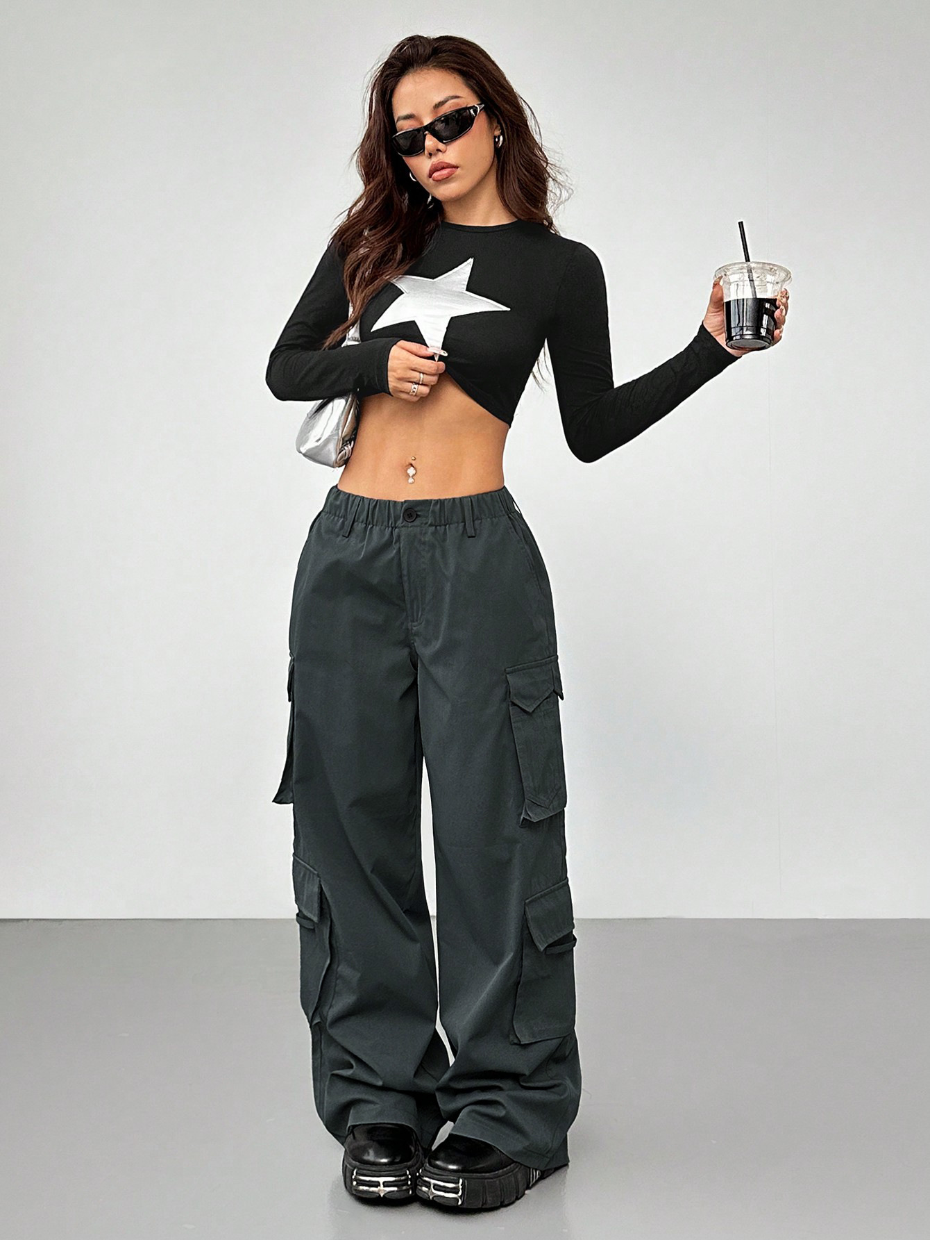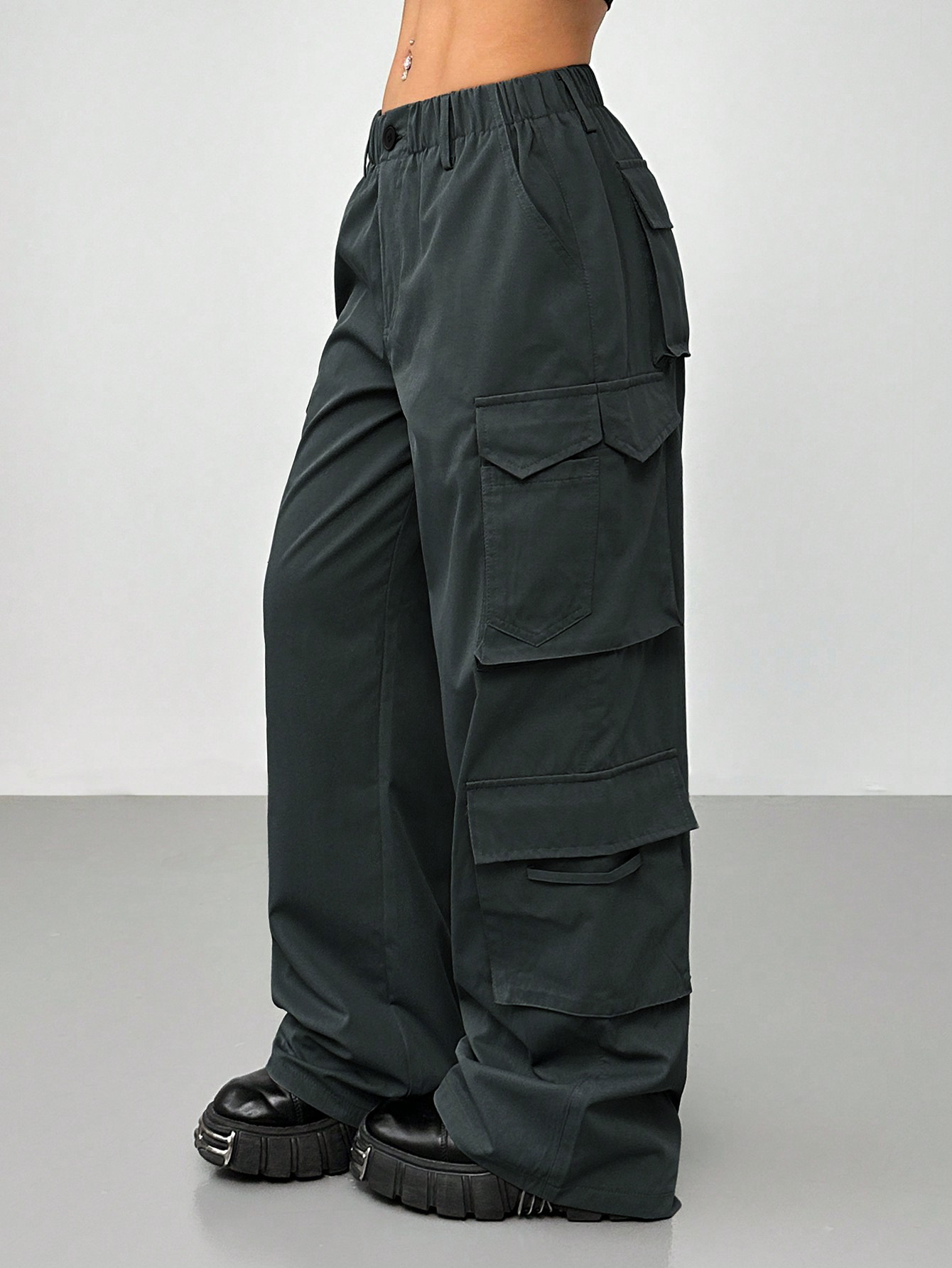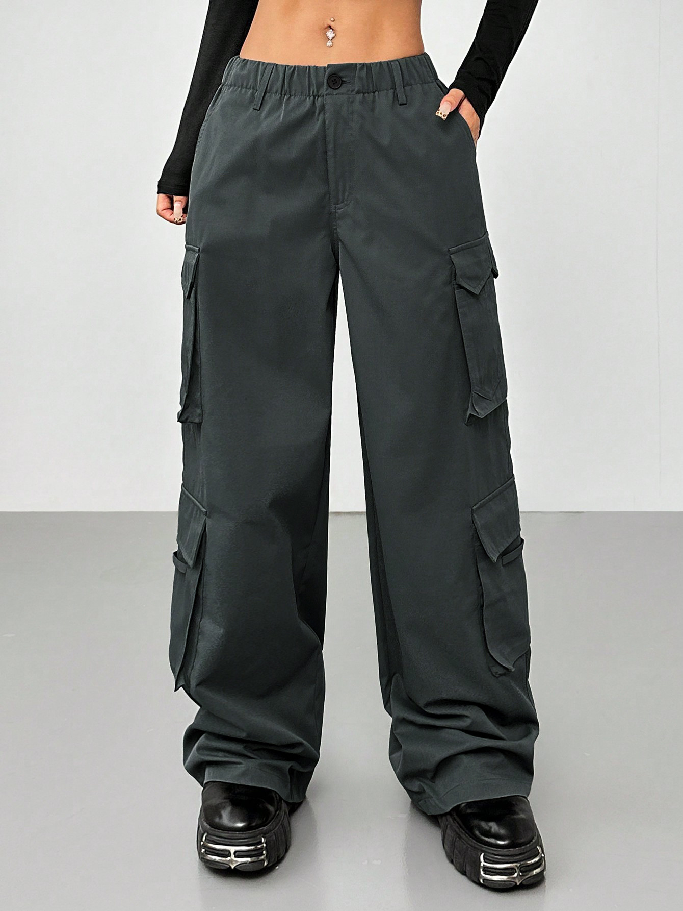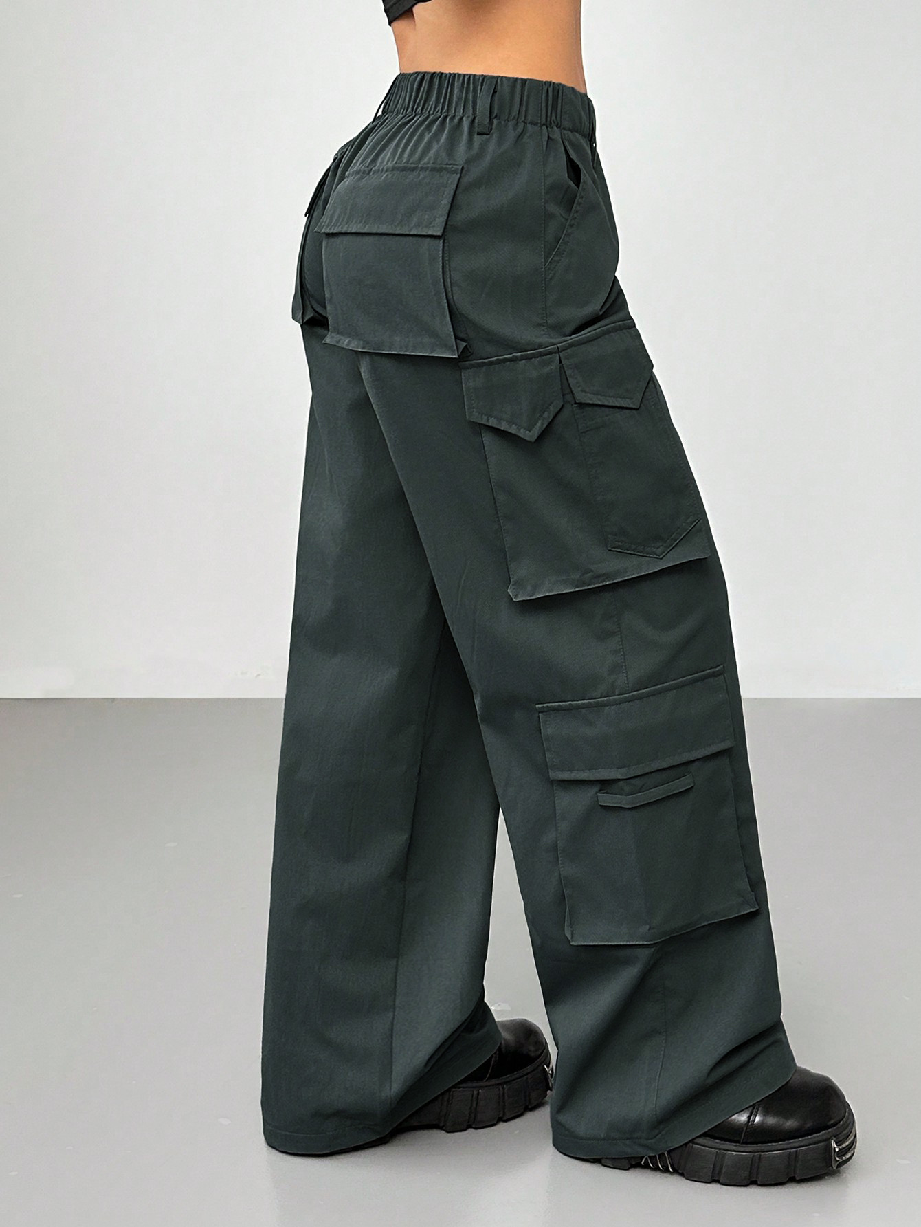 Casual Pants Elastic Waist High Waist Wide-leg Workwear Trousers