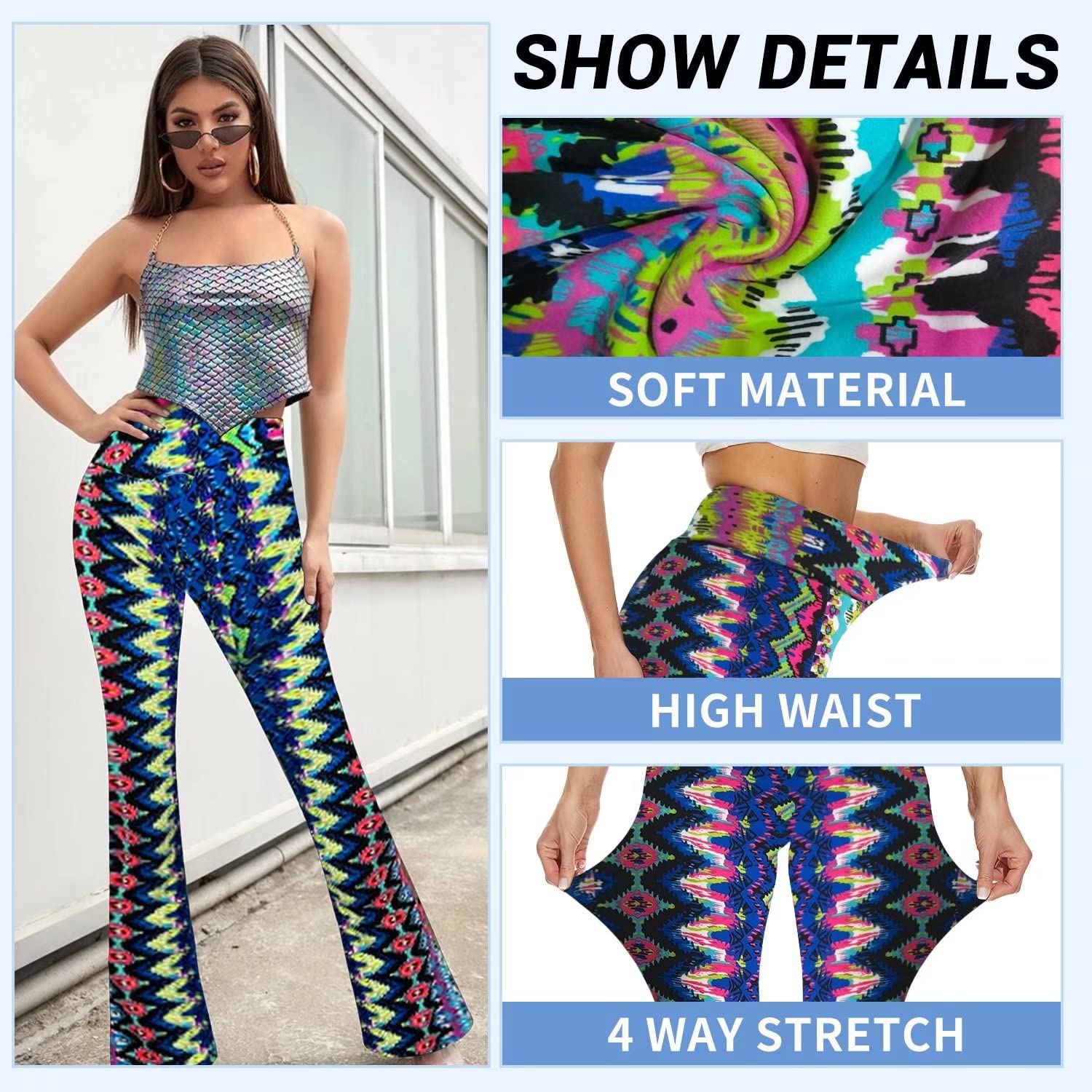 Flared Pants - Cropped High-waisted Printed Ethnic Style 2-piece