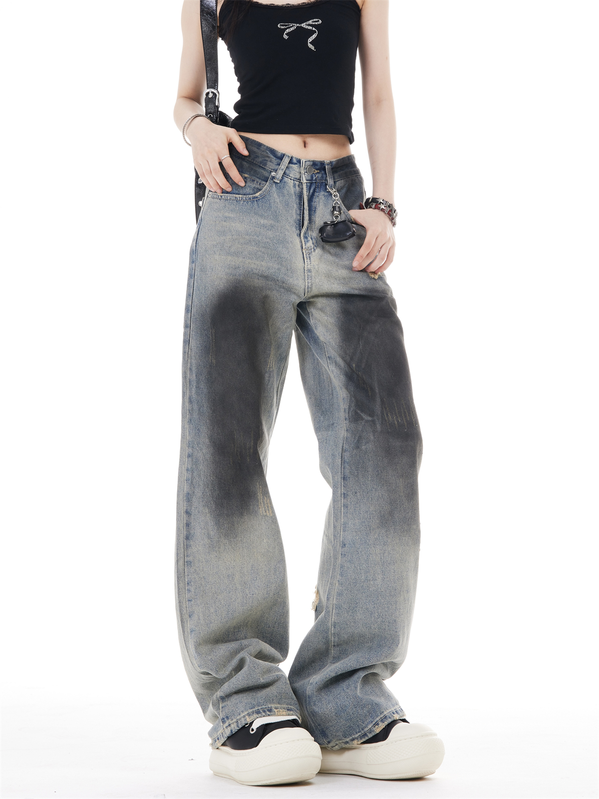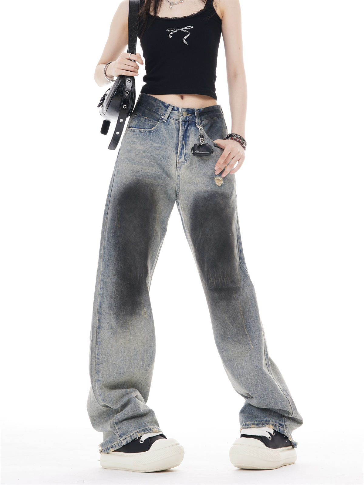 Retro High Waist Wide Leg Ripped Jeans