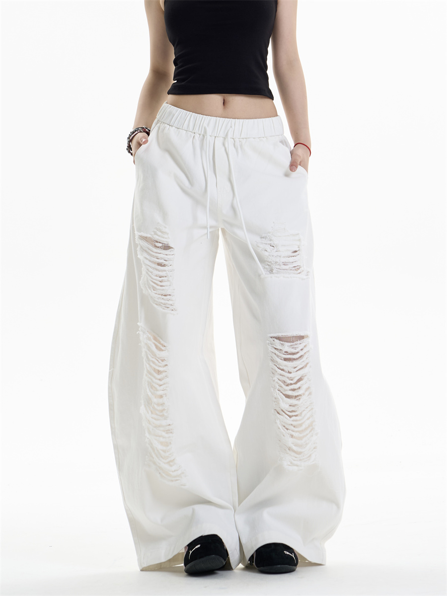 Ripped Casual Pants Women's Loose Straight Wide-leg Pants