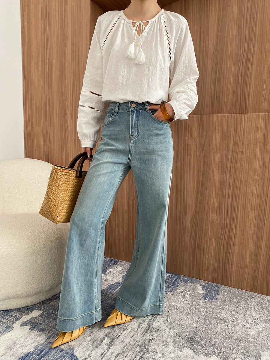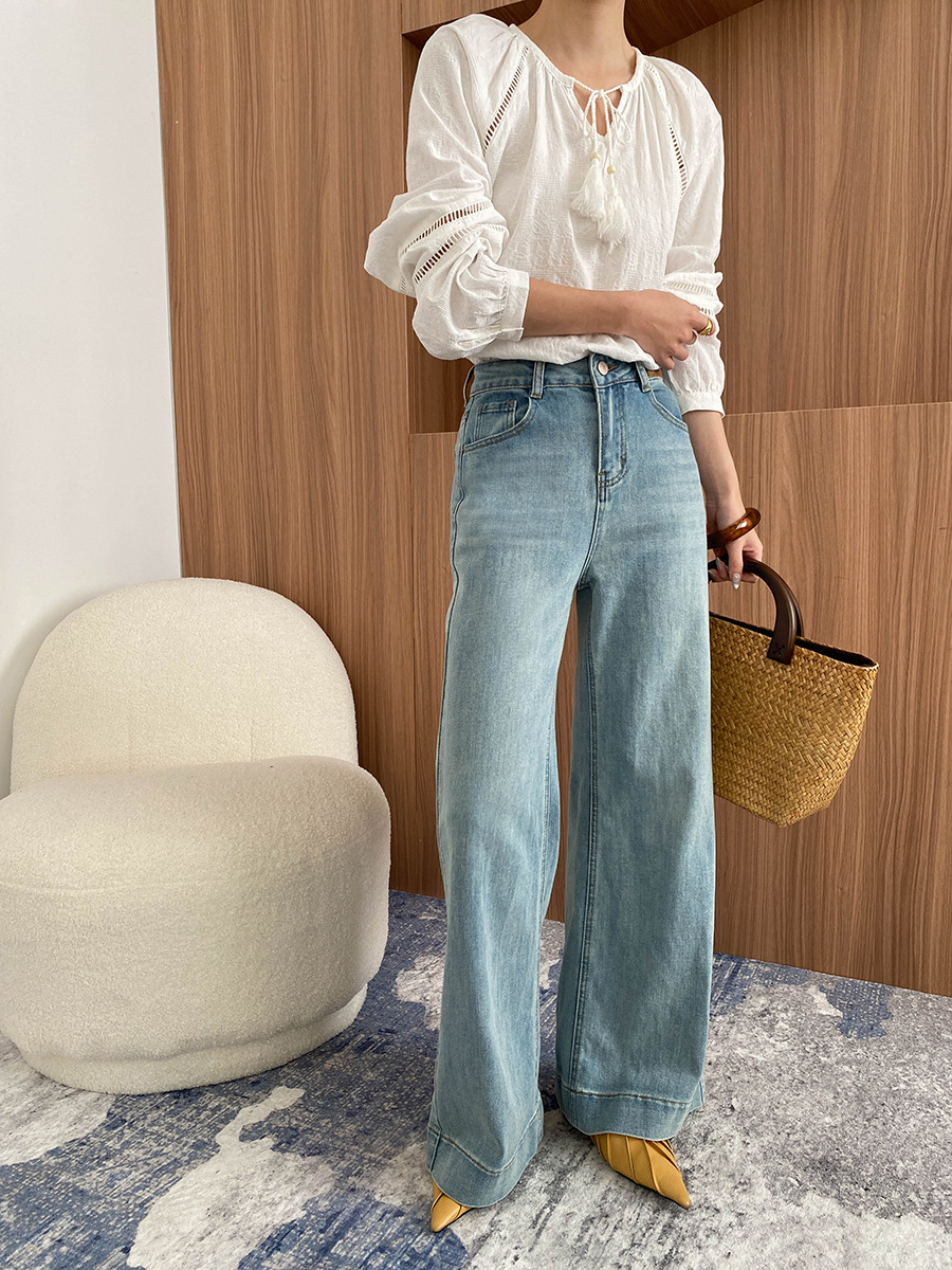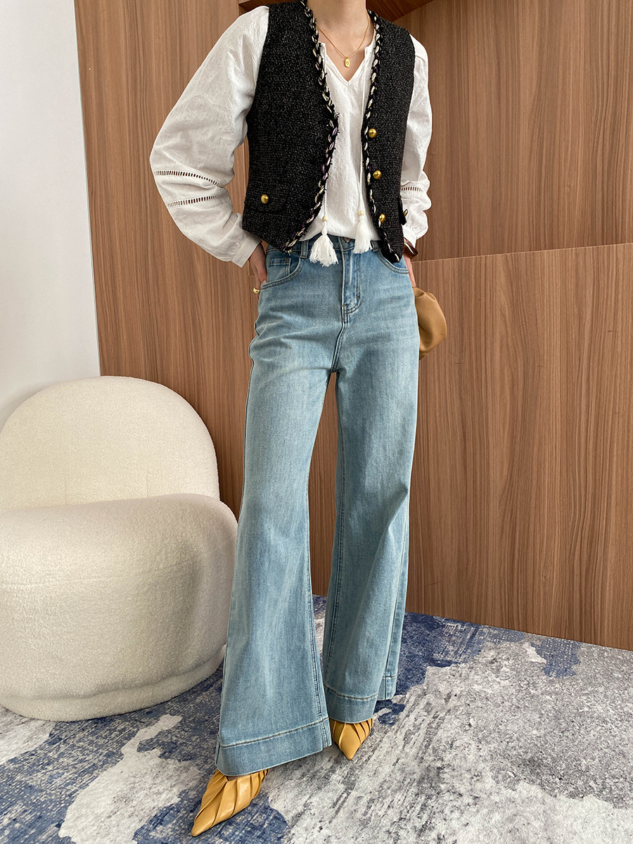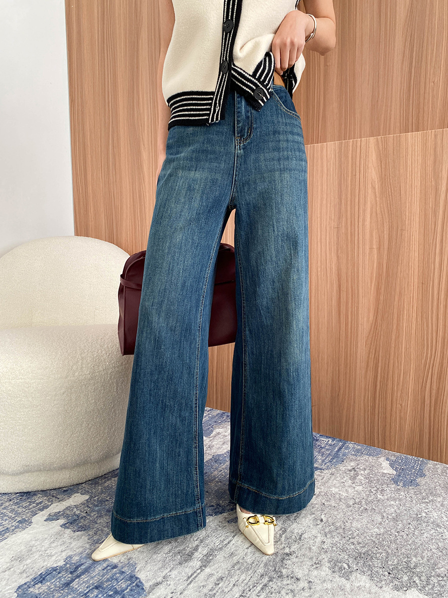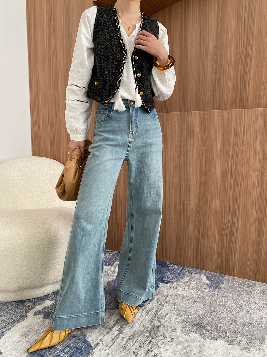 Soft Elastic Washed High Waist Skinny Loose Wide Leg Jeans