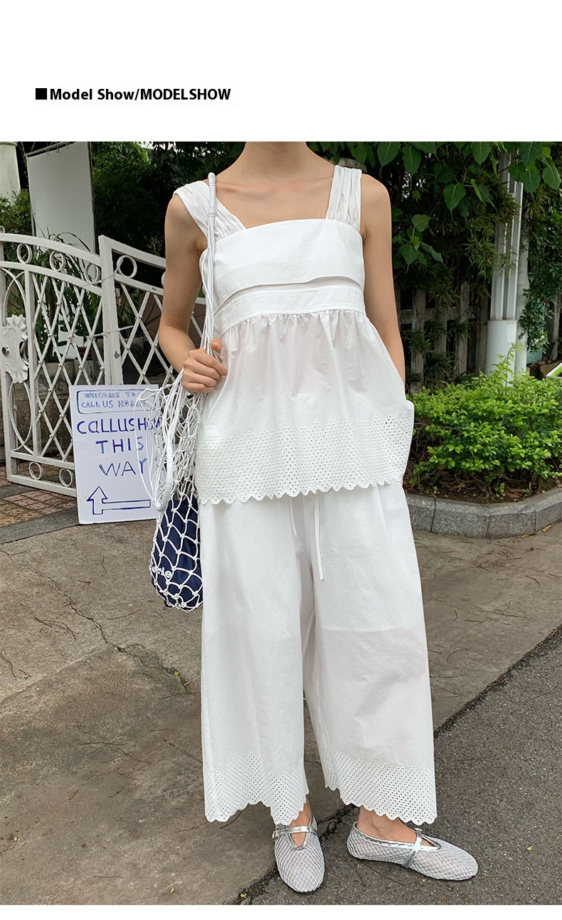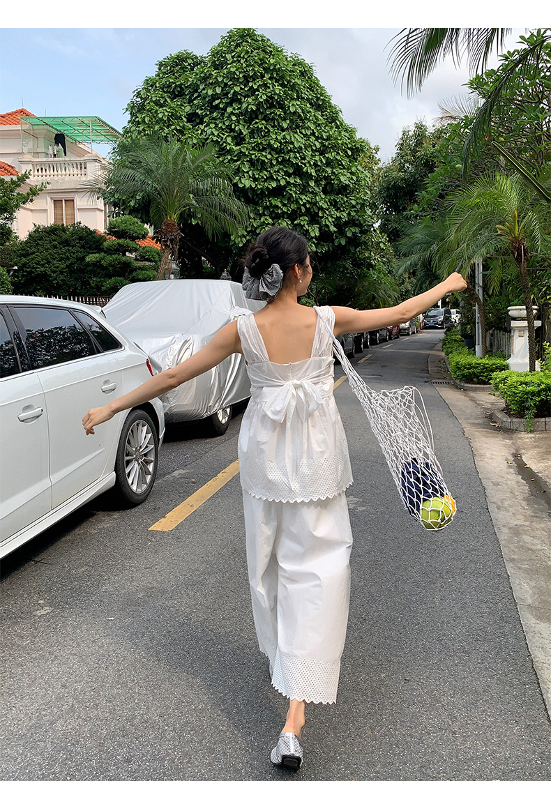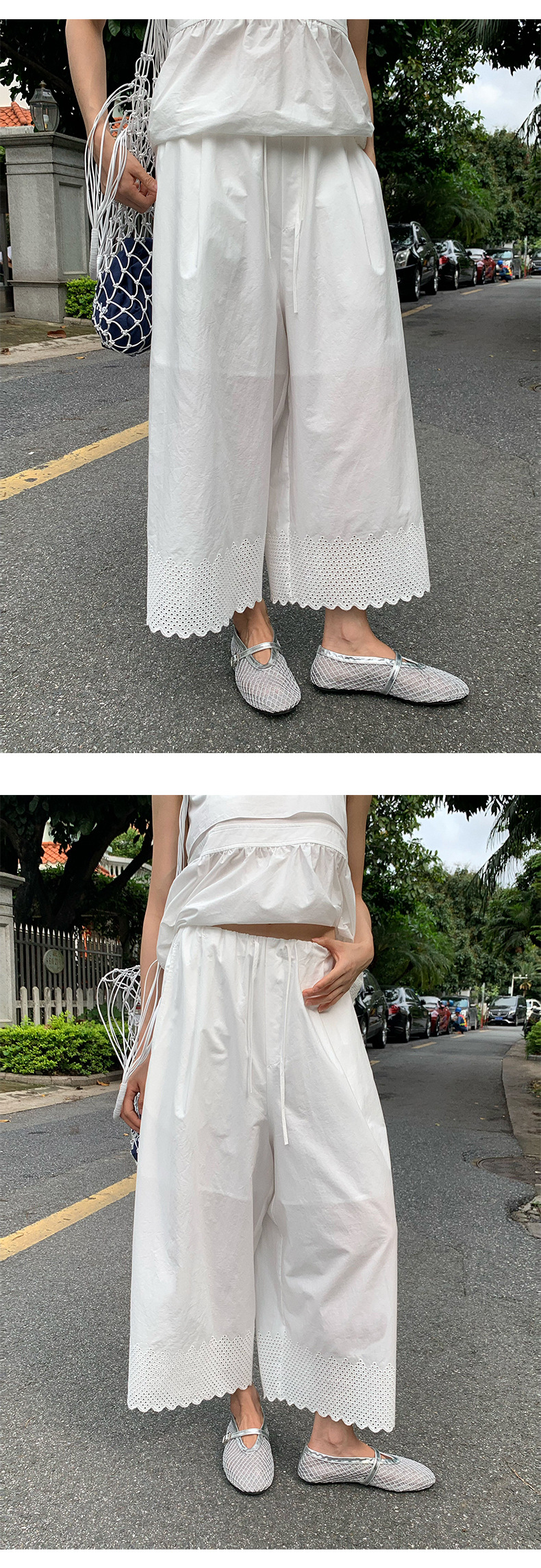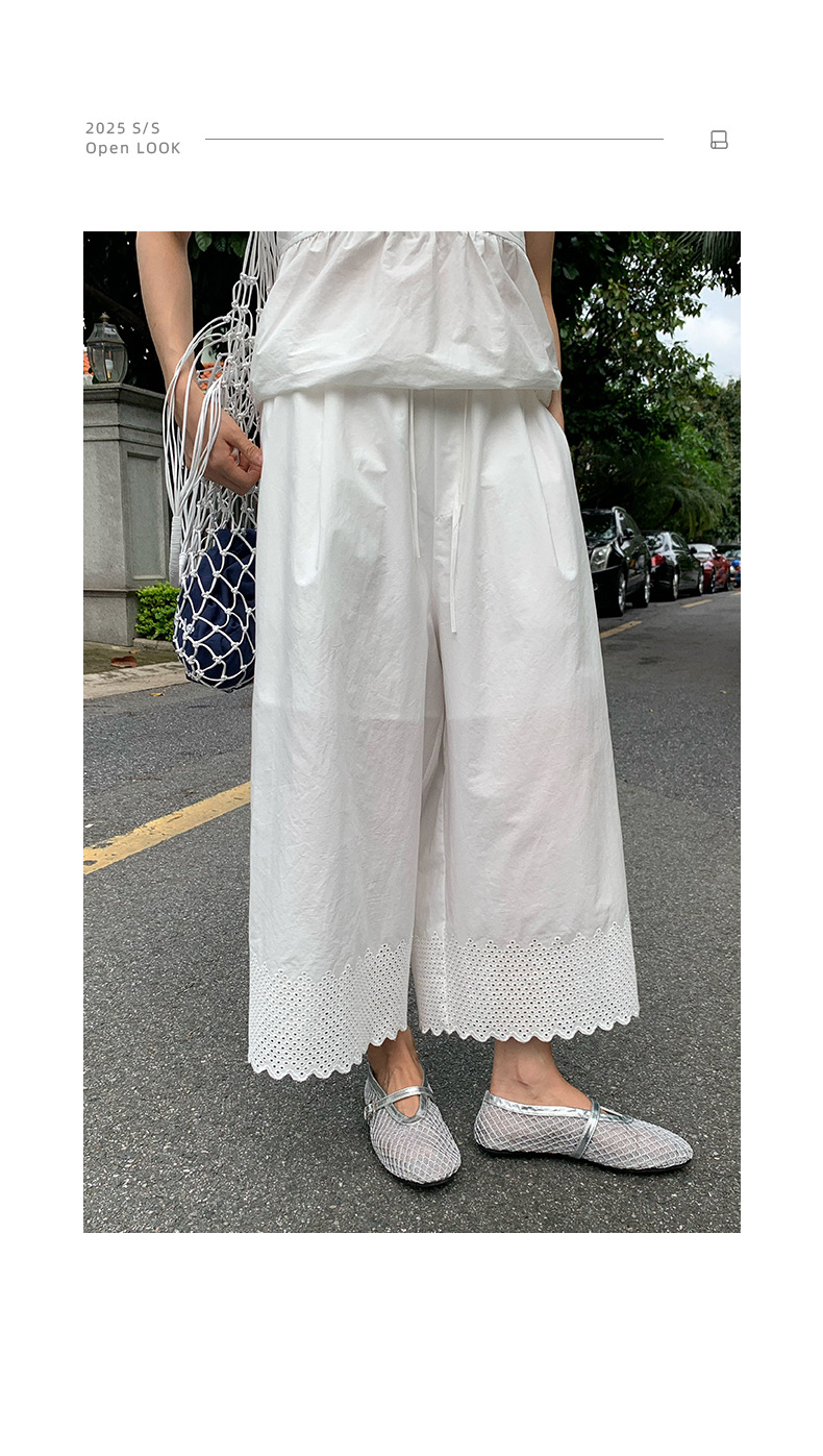 Summer Thin Women's Embroidered Cropped Casual Wide-leg Pants