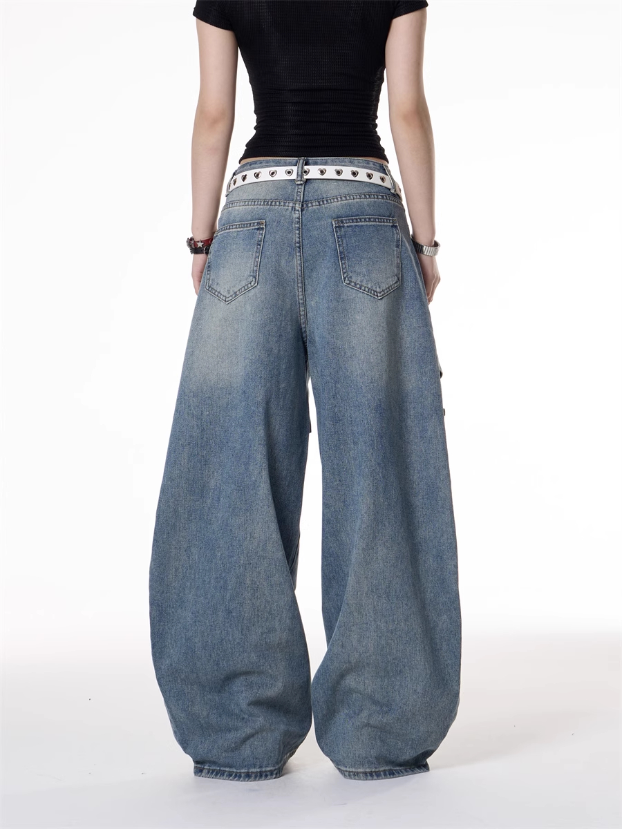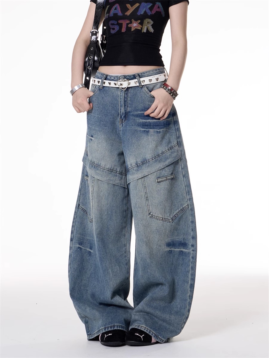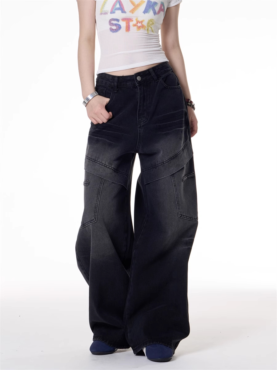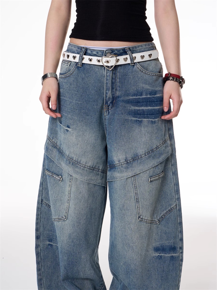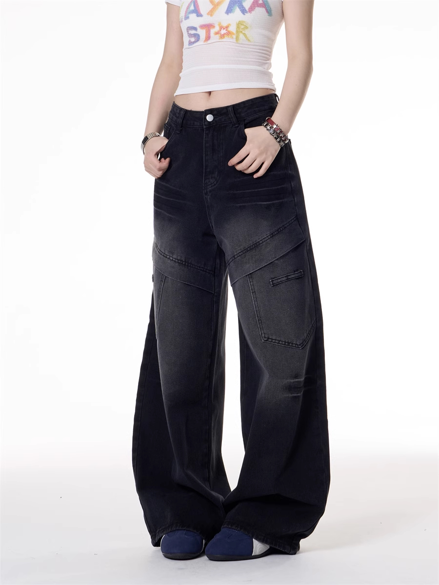 American Retro Hot Girl Style Multi-pocket Deconstructive Design Jeans