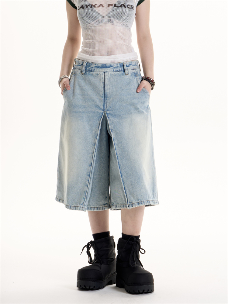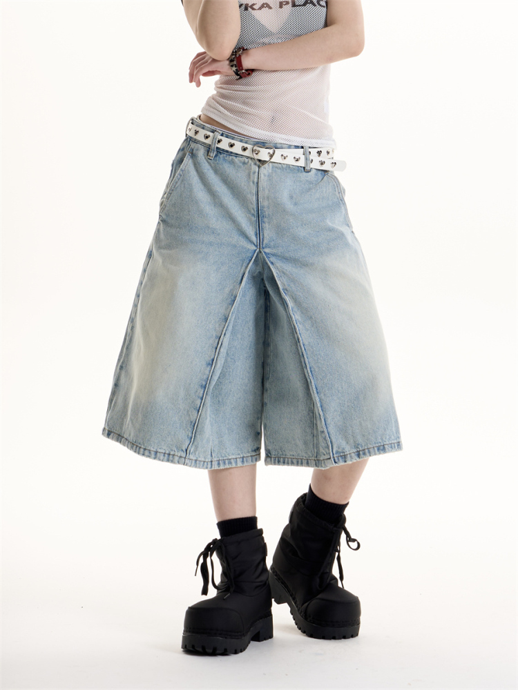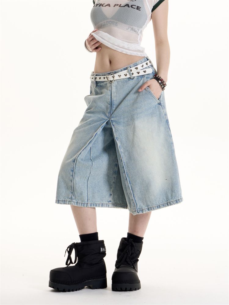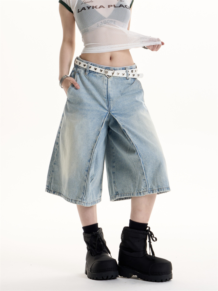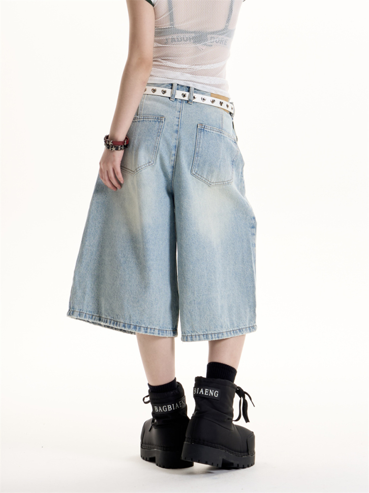 American Retro Hot Girl Style Washed Cropped Jeans