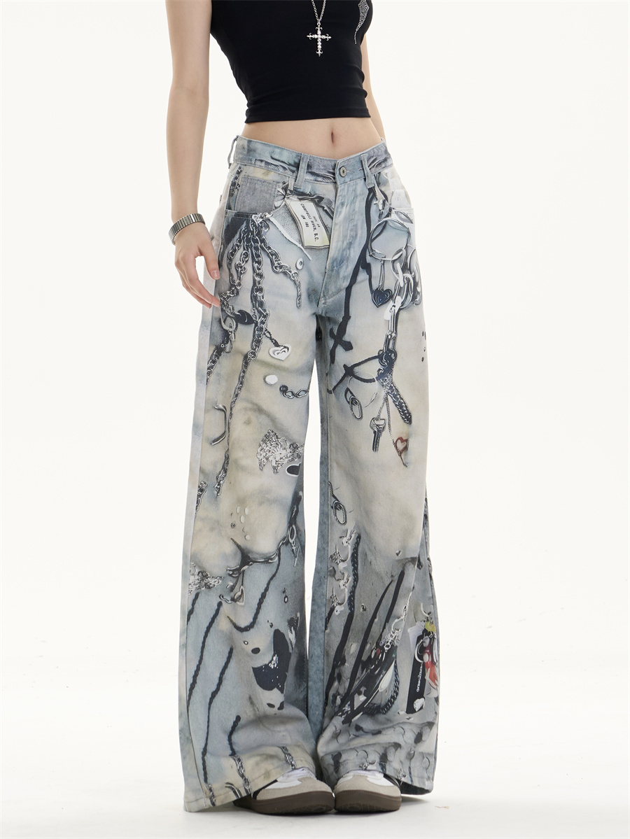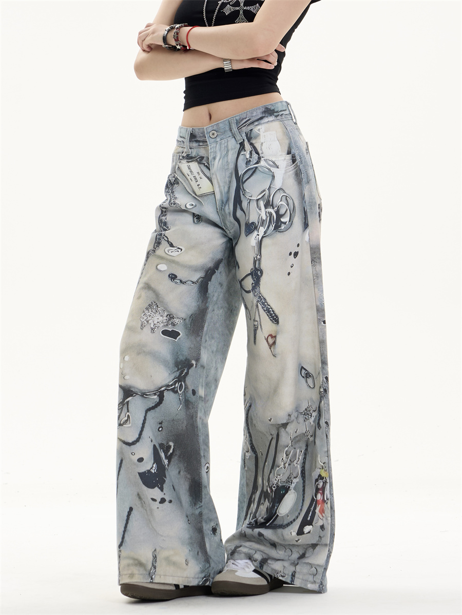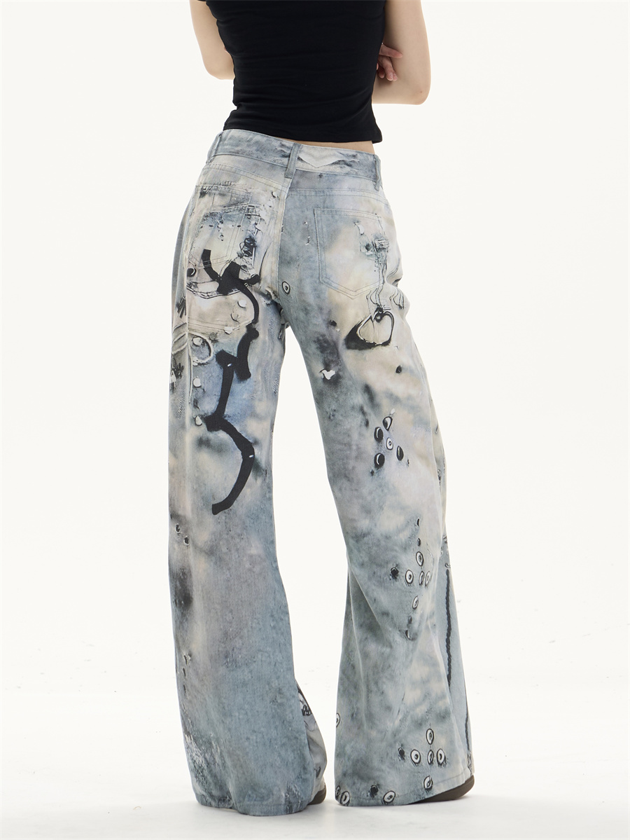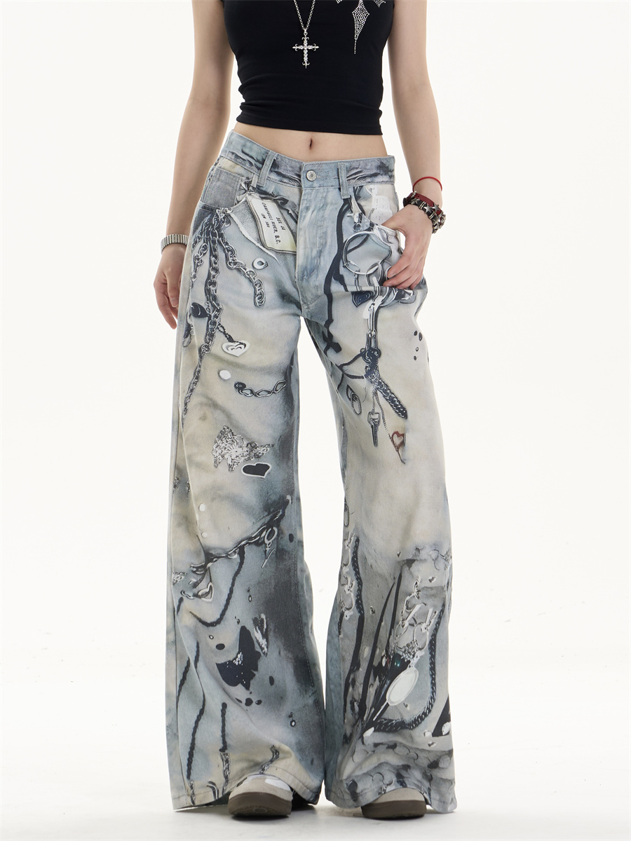 Multi-pocket Wide Leg Jeans Straight Casual Pants