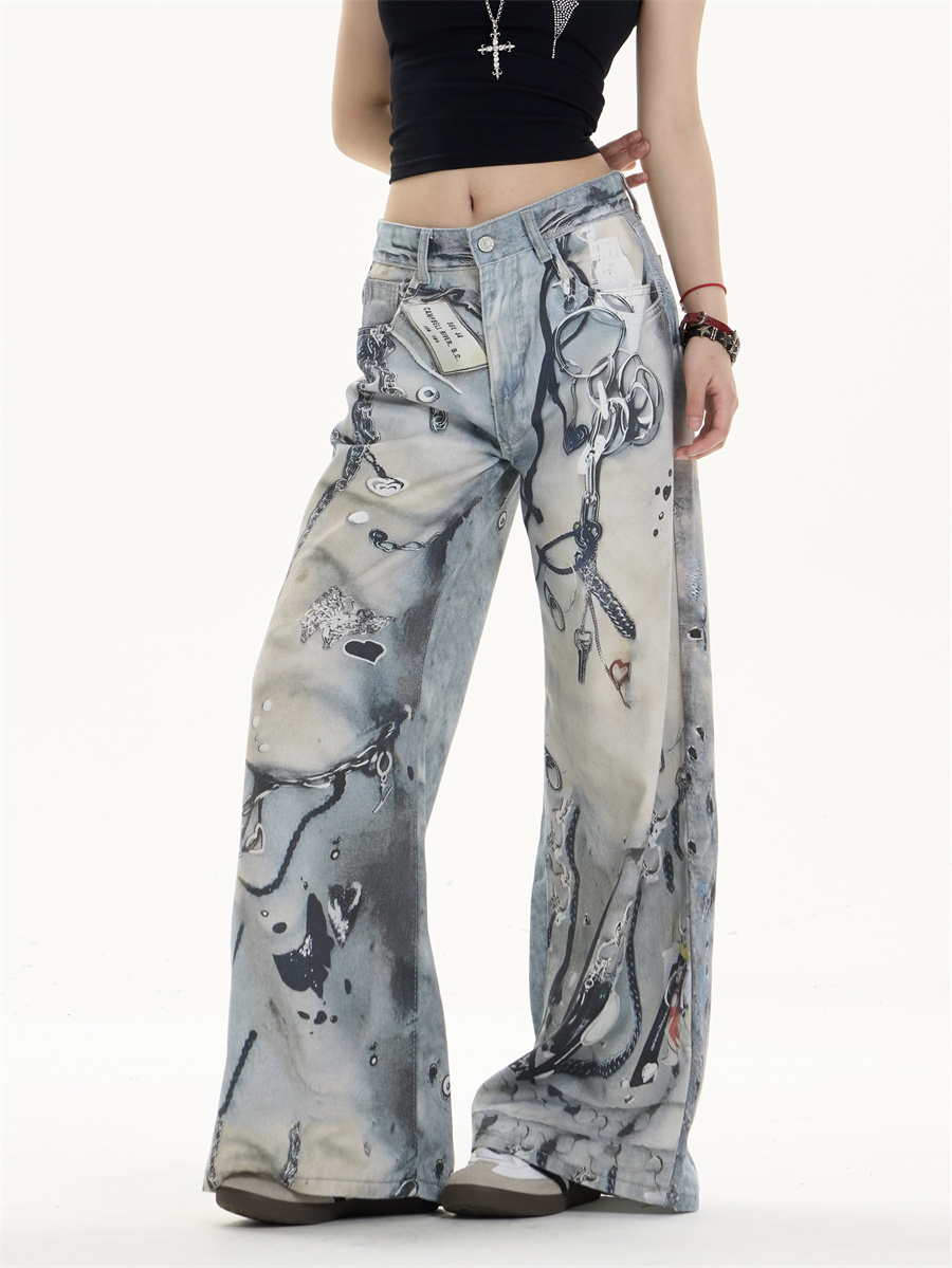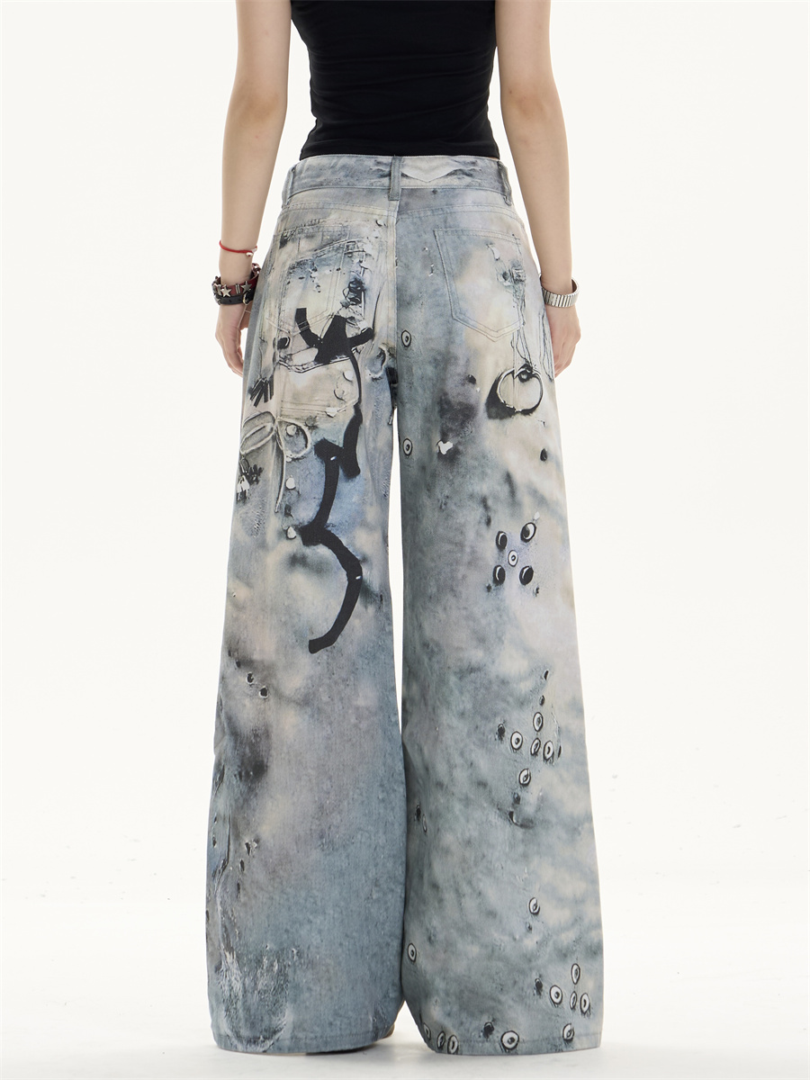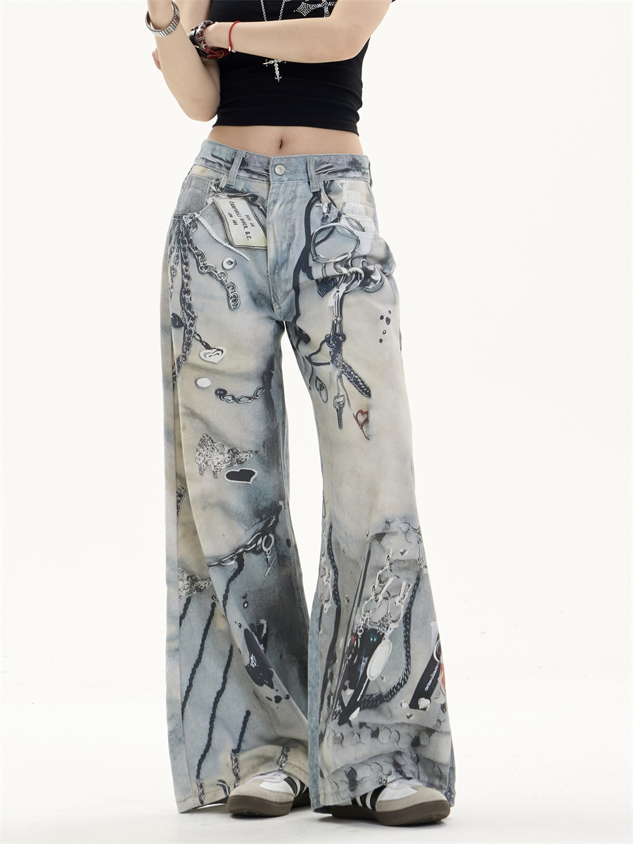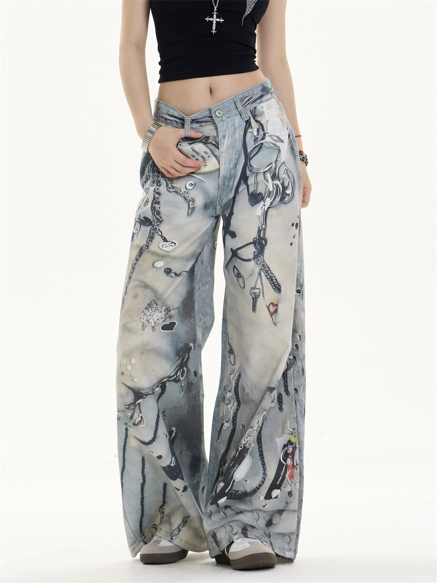 Multi-pocket Wide Leg Jeans Straight Casual Pants