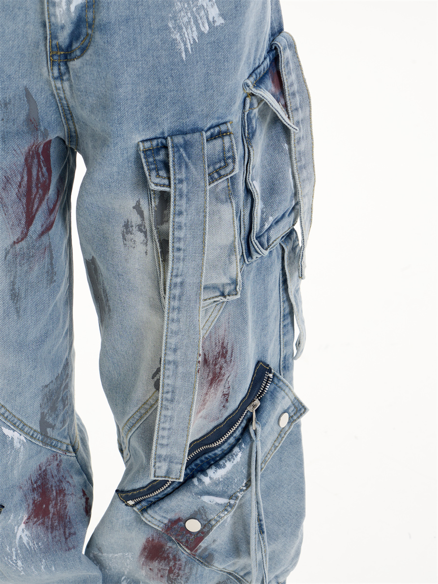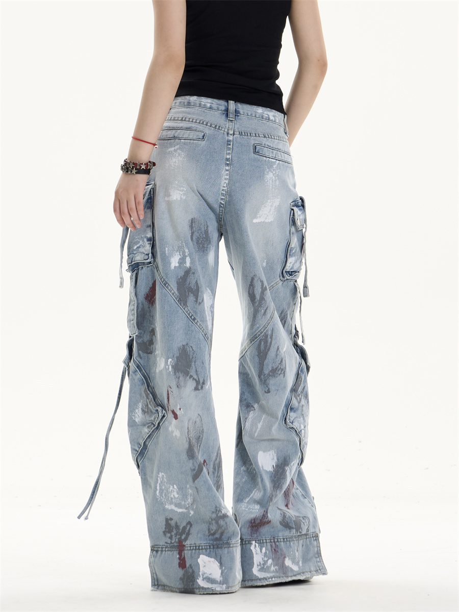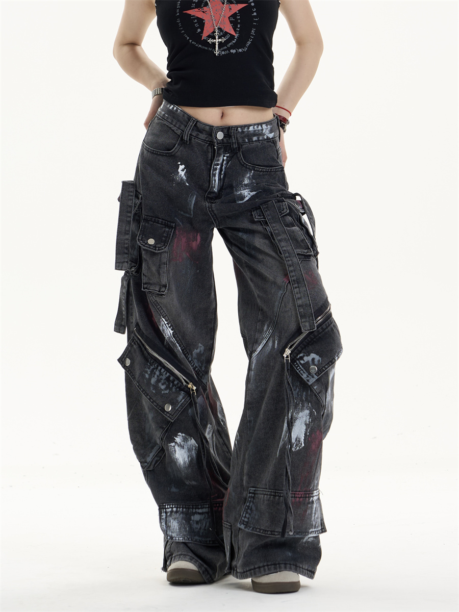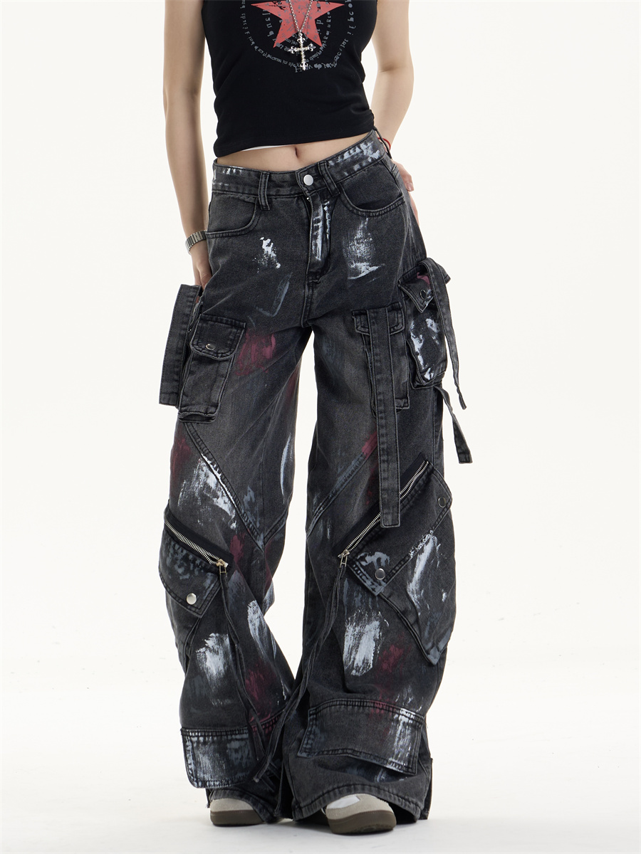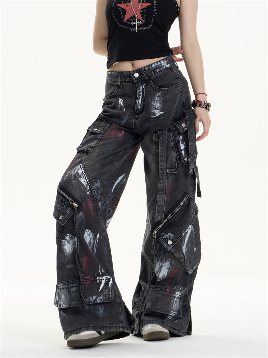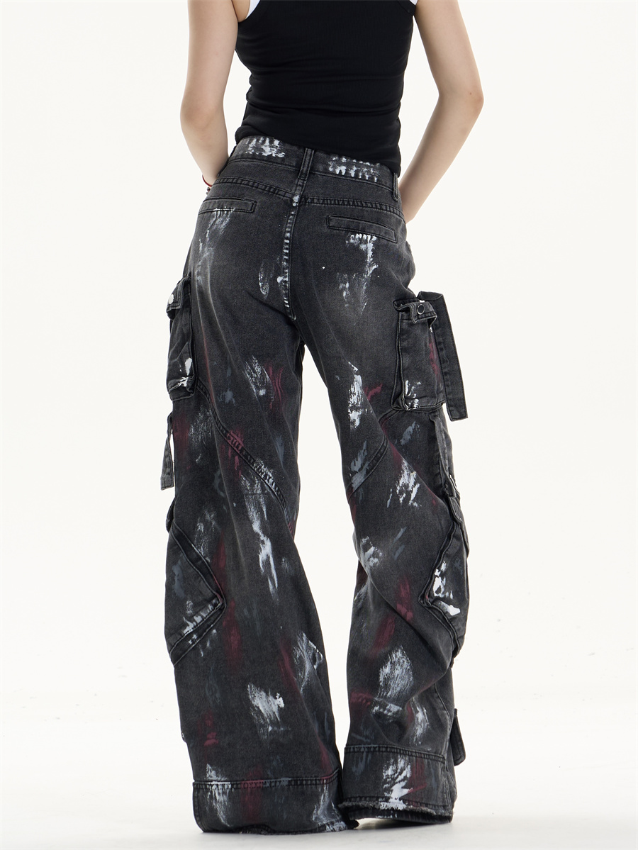 Multi-Pocket Workwear Jeans Women's Loose Wide-leg Pants