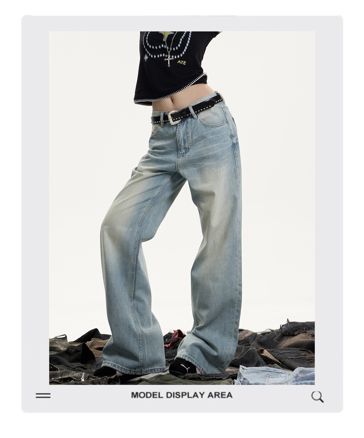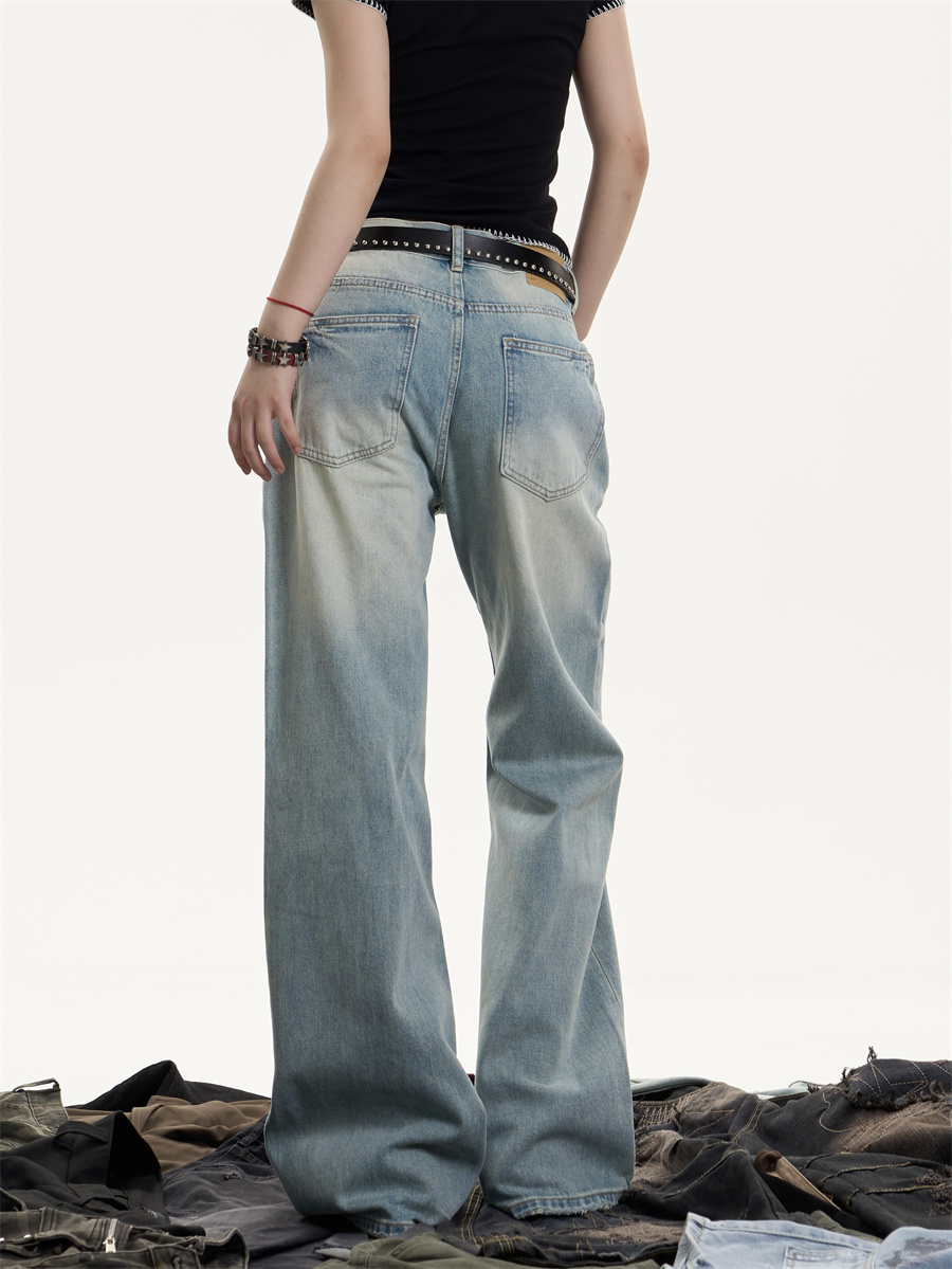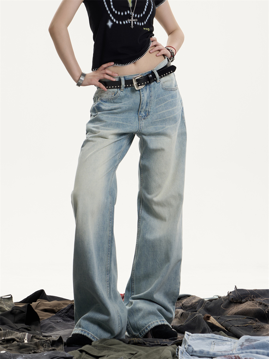 Retro Washed Distressed Jeans With Whiskers Female Hot Girl Loose