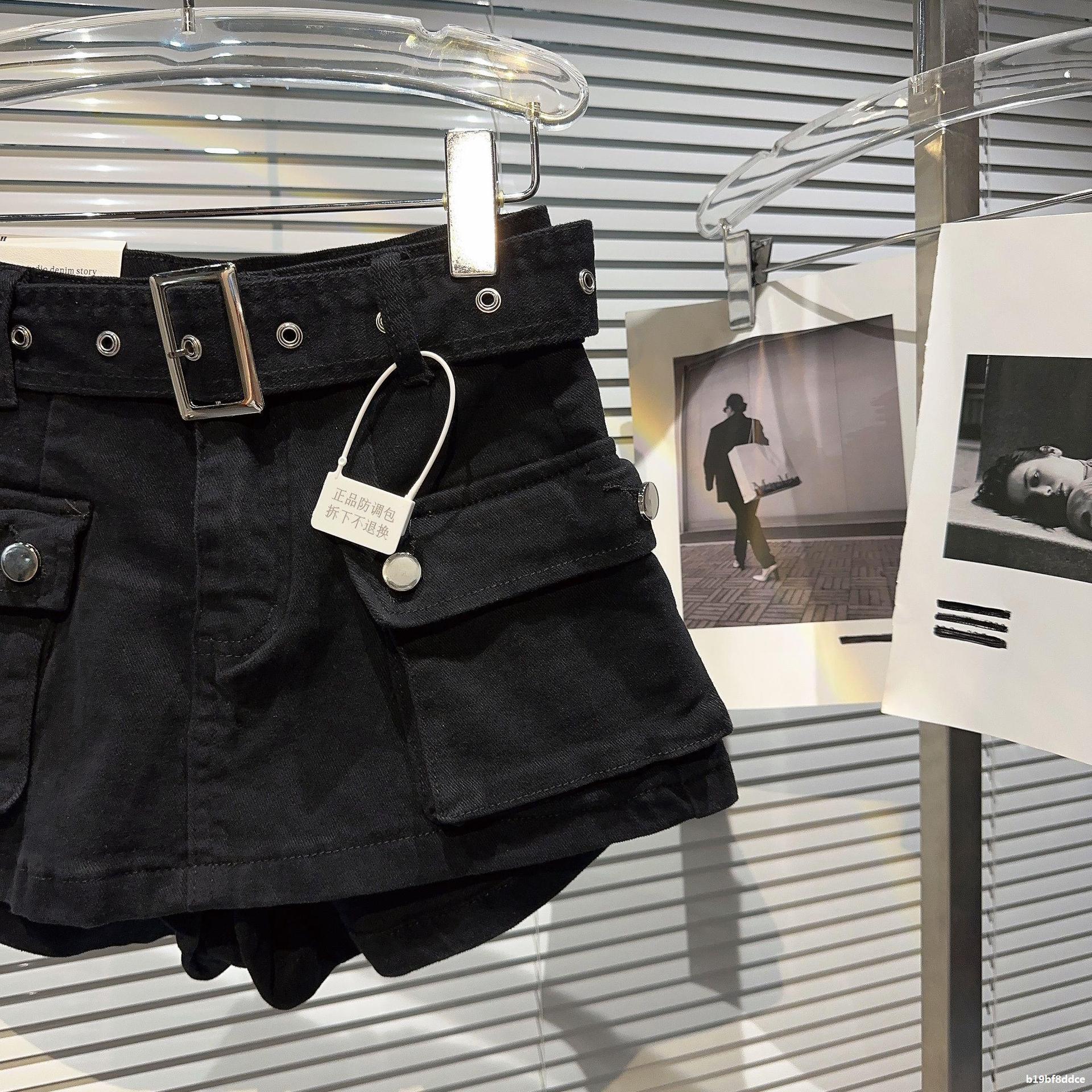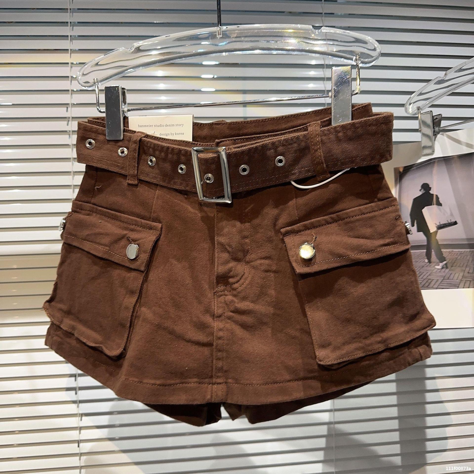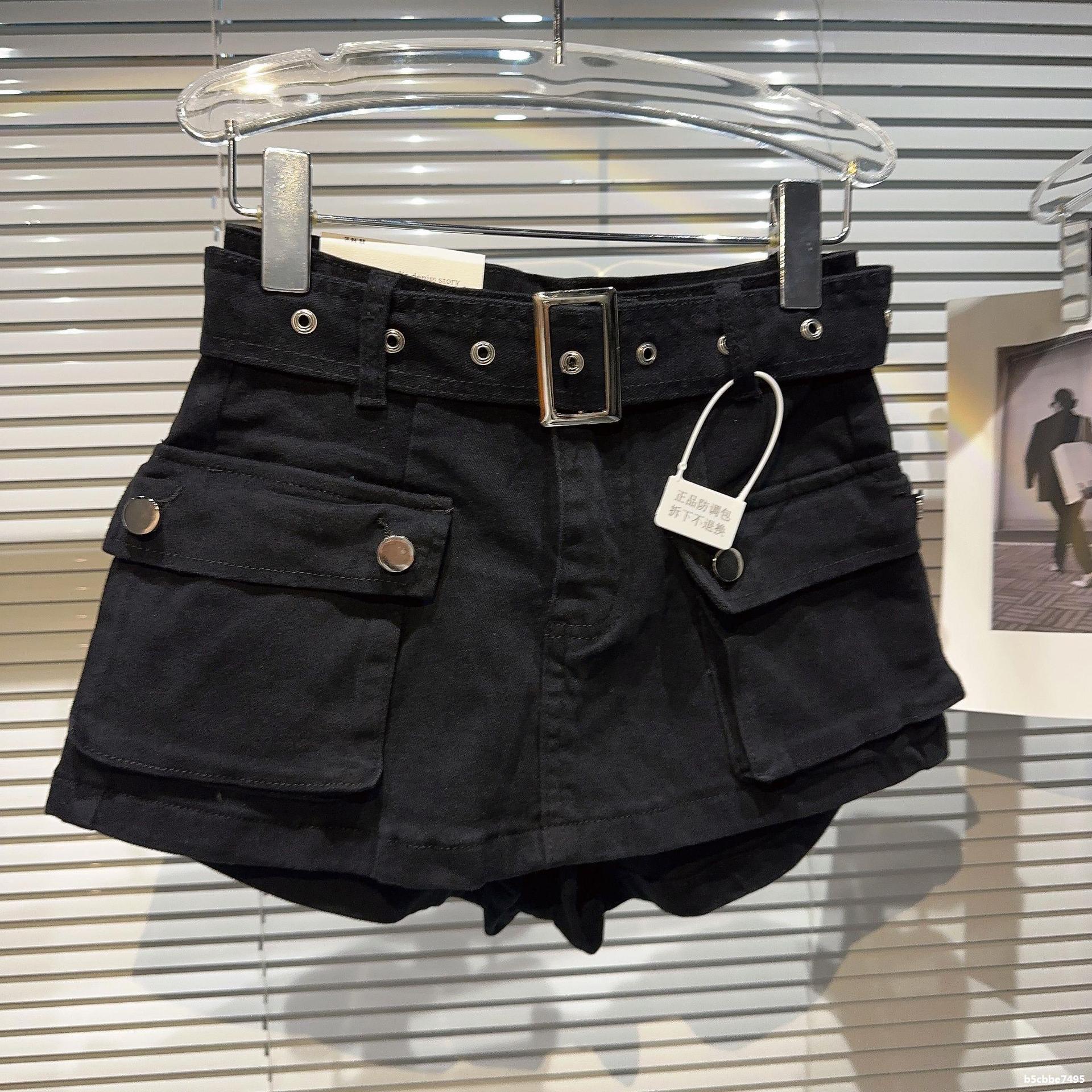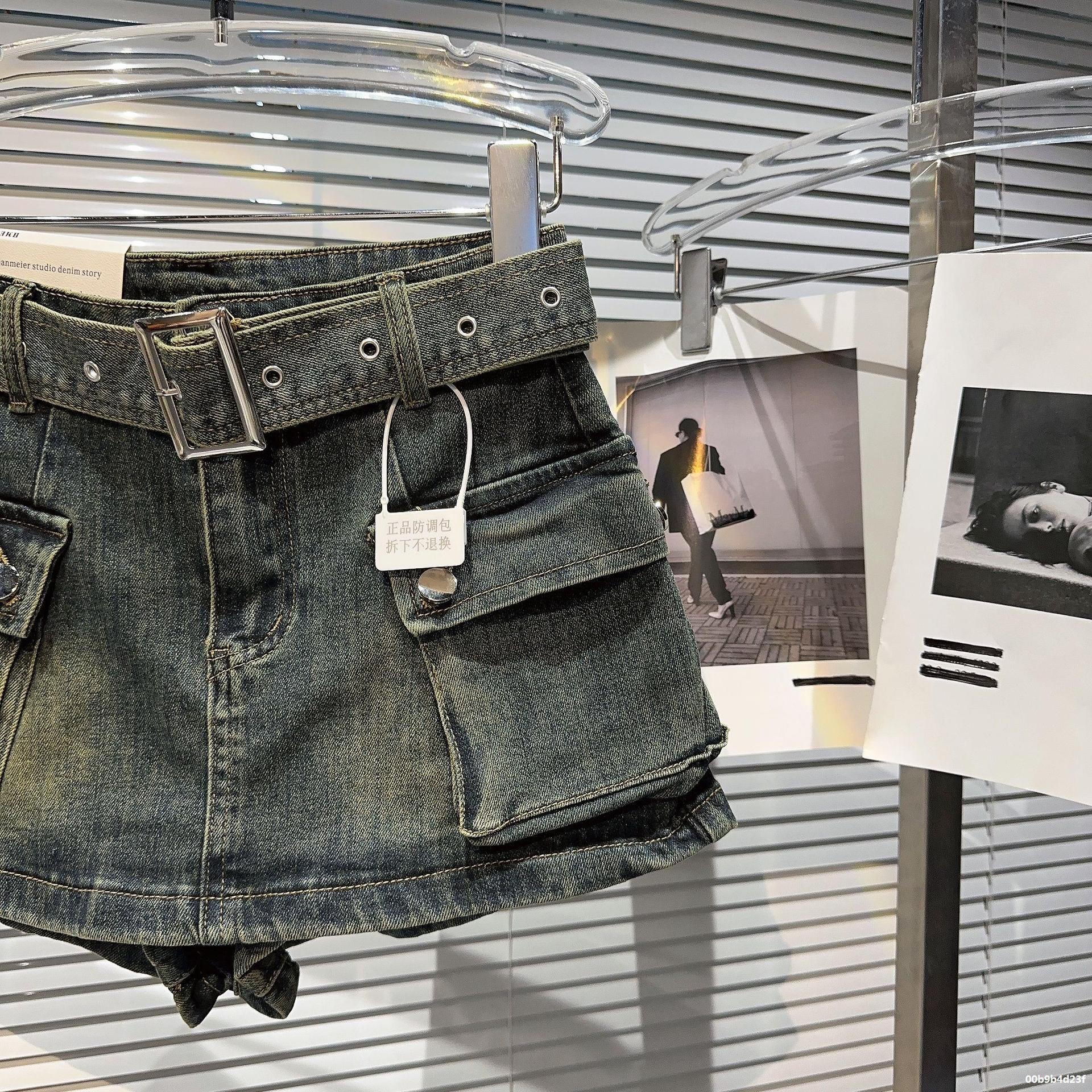 • Women's Fashionable Retro Large Pocket Belt Pantskirt Skirt Denim Shorts