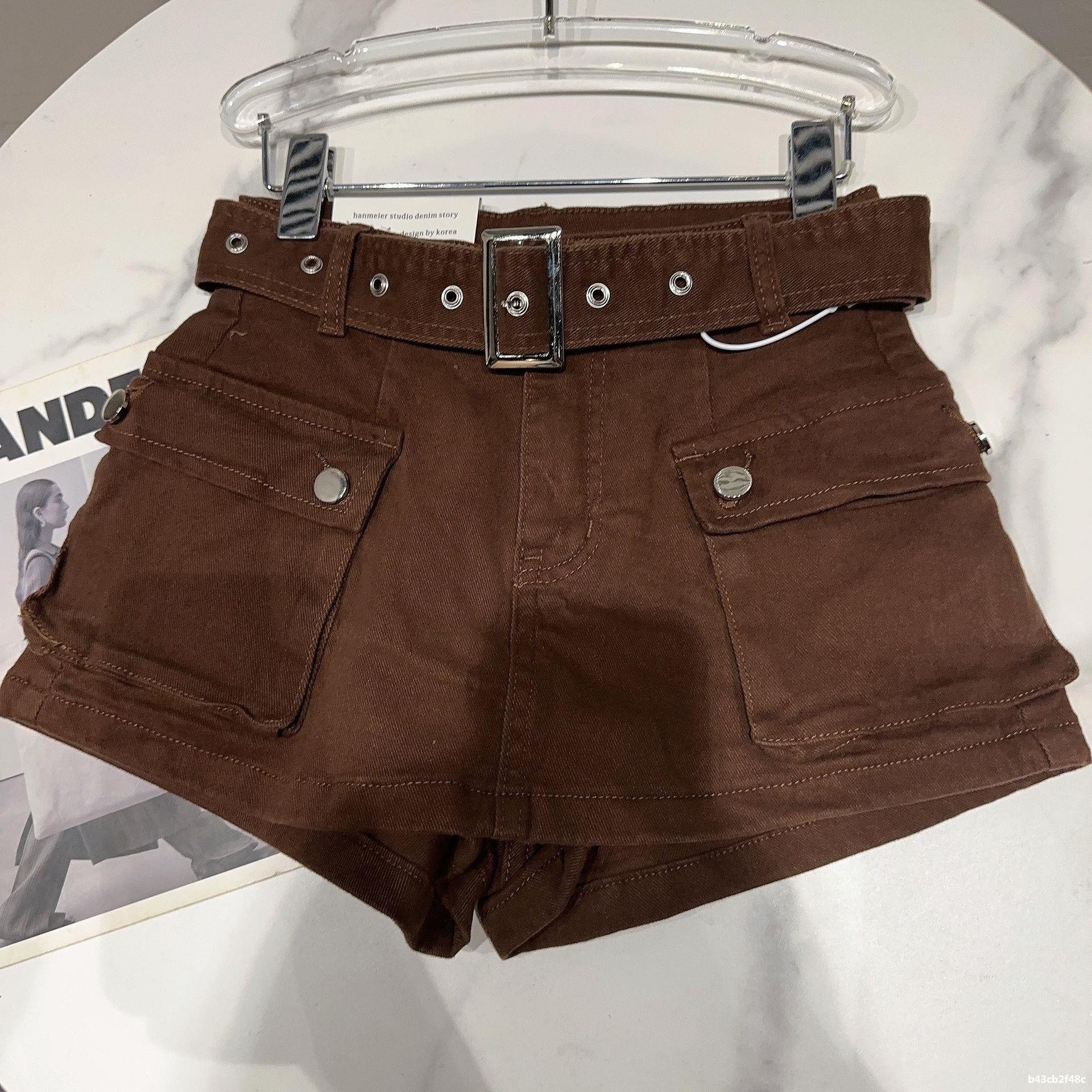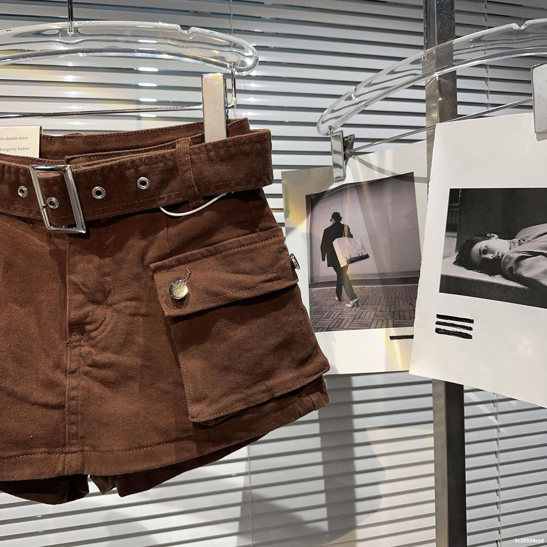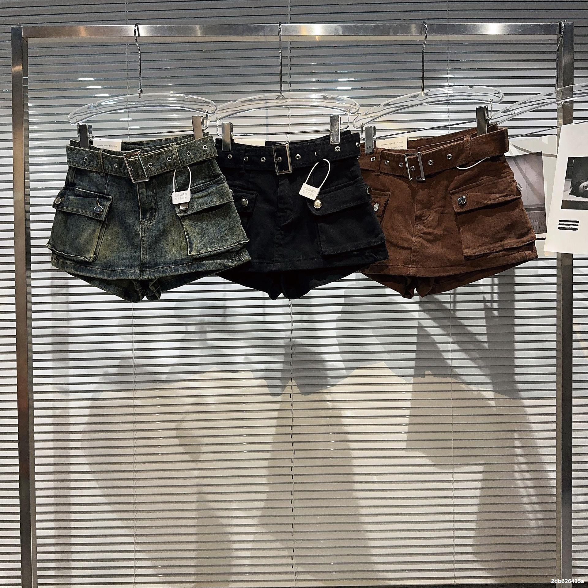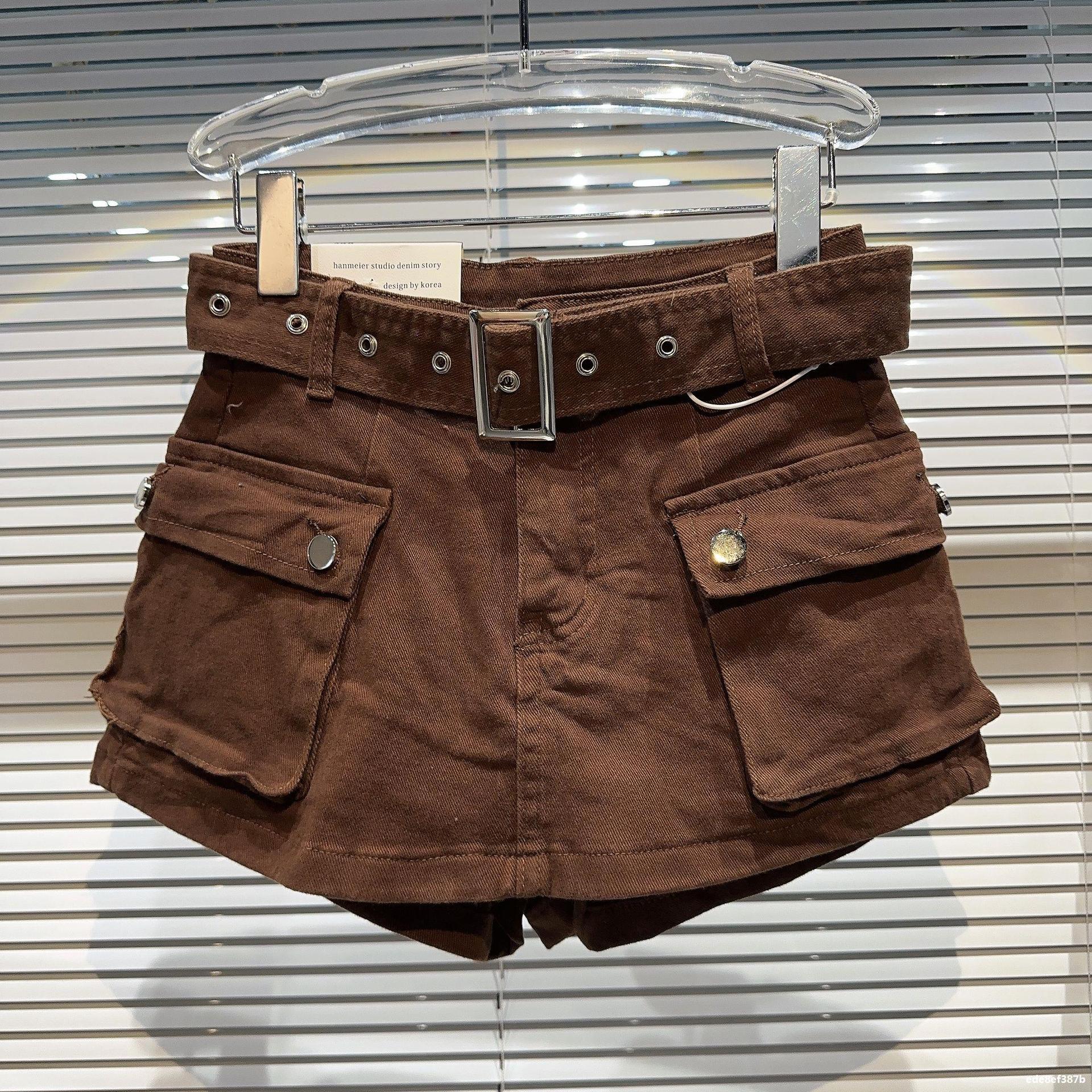 • Women's Fashionable Retro Large Pocket Belt Pantskirt Skirt Denim Shorts