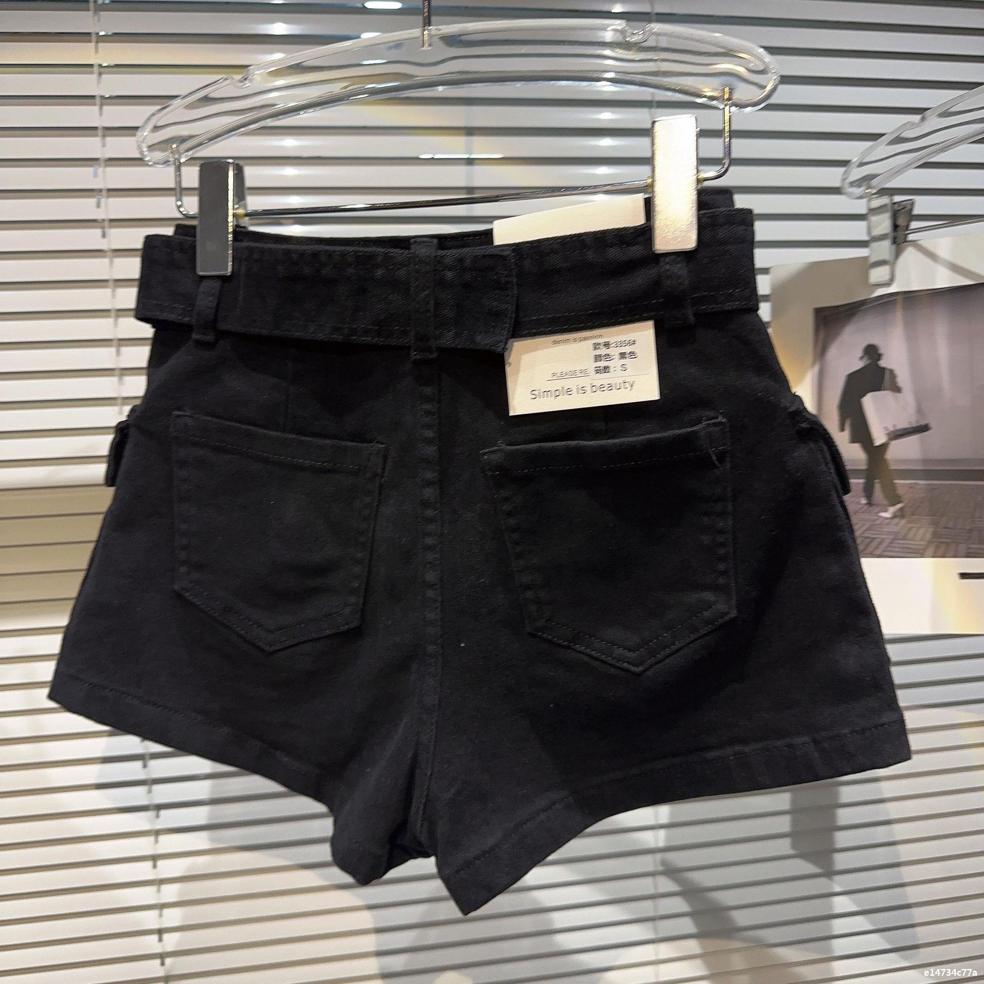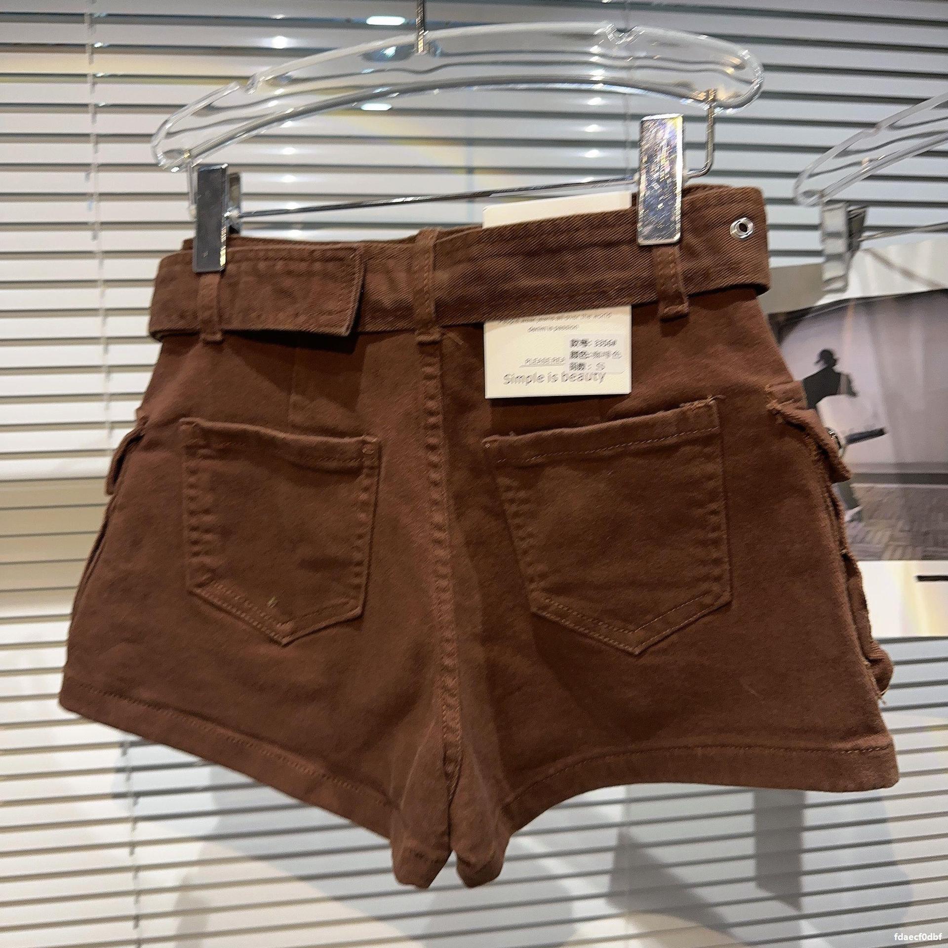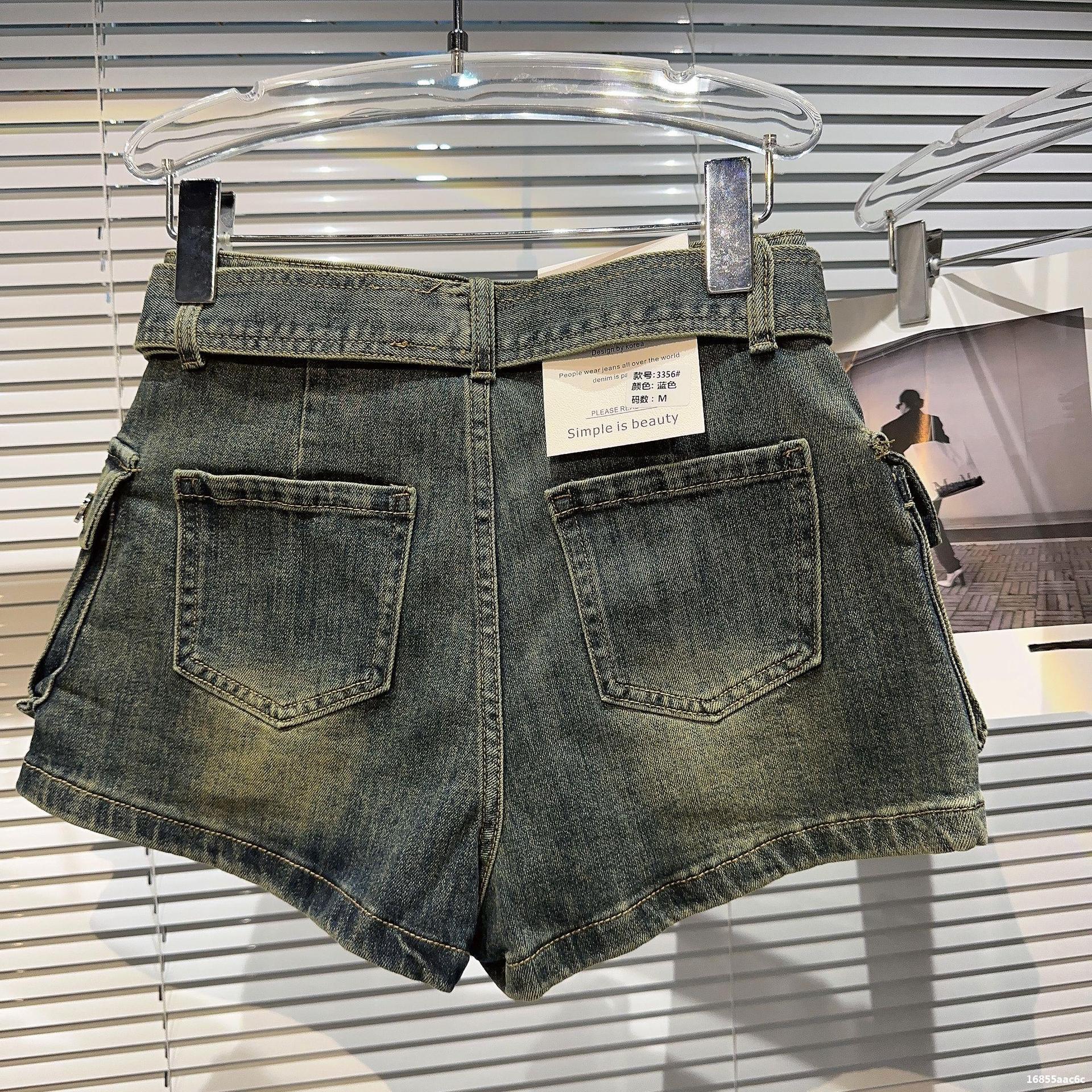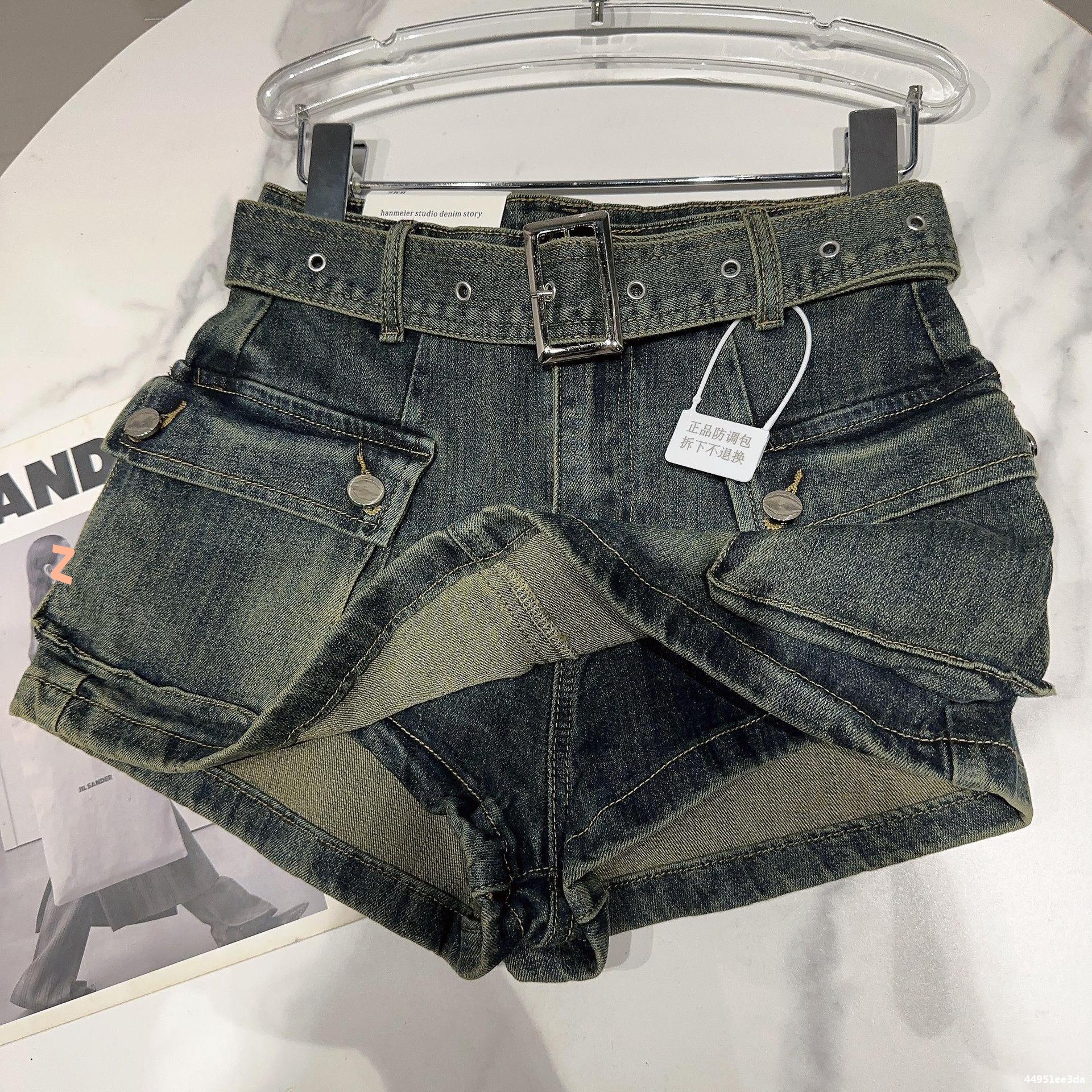 • Women's Fashionable Retro Large Pocket Belt Pantskirt Skirt Denim Shorts