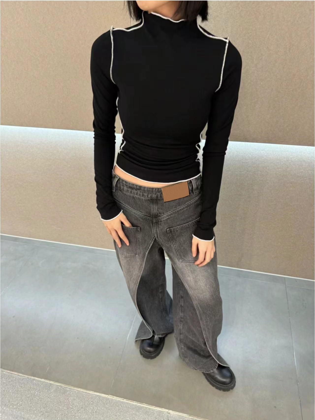 Be the first to review “Reversible Washed Distressed Jeans For Women Deconstructed Vintage Banana Pants” Cancel reply
